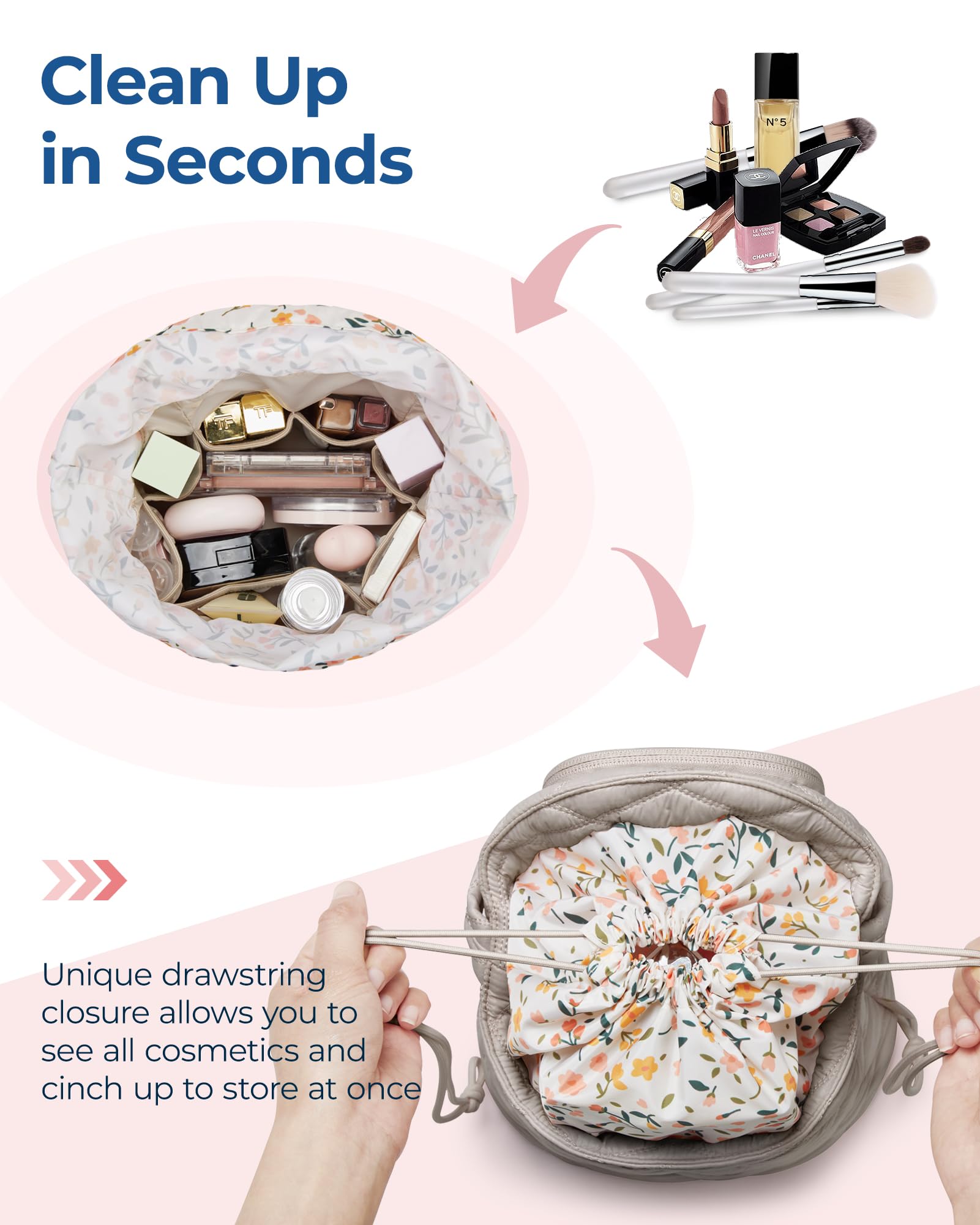 - 【Innovative Drawstring Design】 Discover convenience with our unique drawstring design that provides easy access to your makeup. Simply pull the drawstring to pack and unpack effortlessly, keeping your cosmetics visible and neatly organized in an instant.