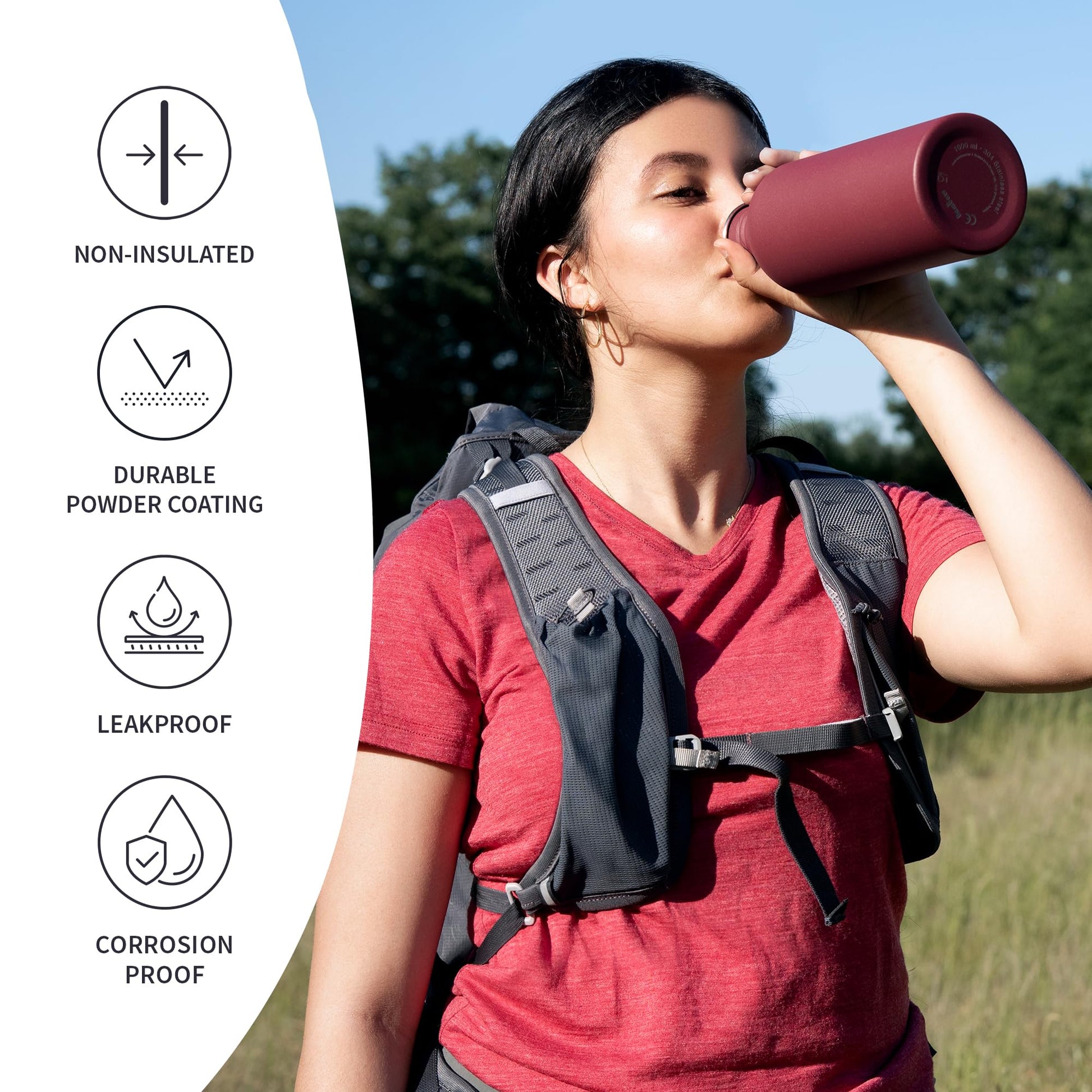 Bambaw 16 oz Water Bottle Non-insulated, Metal Water Bottle Red, Single Walled Stainless Steel Water Bottle, Leak Proof Water Bottle for School, BPA Free Water Bottle no Straw – Red Berry