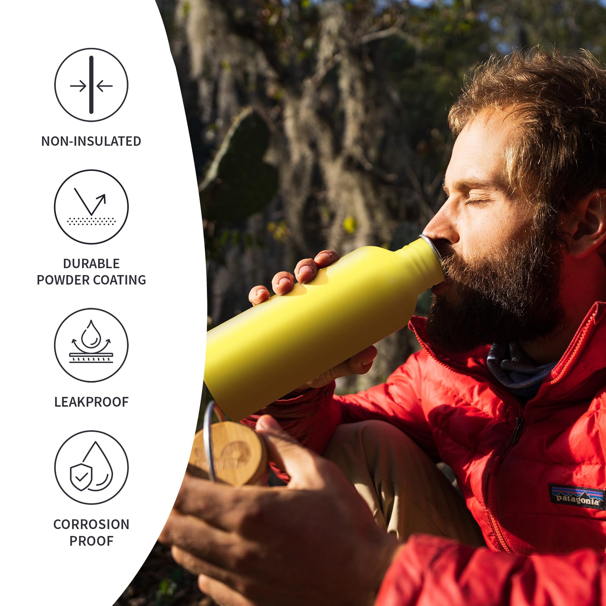 Bambaw Stainless Steel Water Bottles 16 oz, Yellow Water Bottle Stainless Steel, Non Insulated Water Bottle BPA Free, 16 oz Water Bottle with Handle, Reusable Water Bottle for School – Yellow Beam