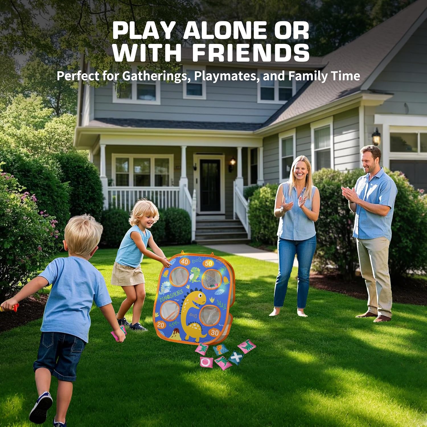 【3 in 1 Bean Bag Toss Game】The Dinosaur Themed Cornhole Game is an indoor and outdoor game designed for kids that combines three modes of play: one is the easier Bean Bag Toss Game, one is the harder