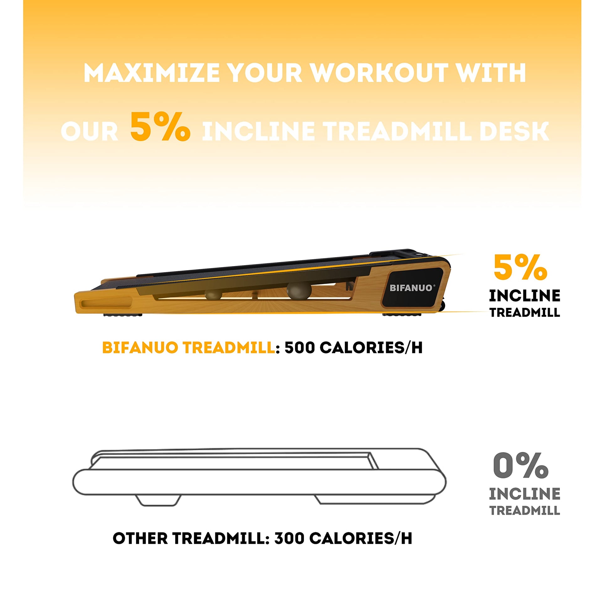 Bifanuo Walking Pad Under Desk Treadmill Small Compact Walking Treadmill with Incline 5° Fit Standing Desk, Flat Treadmill