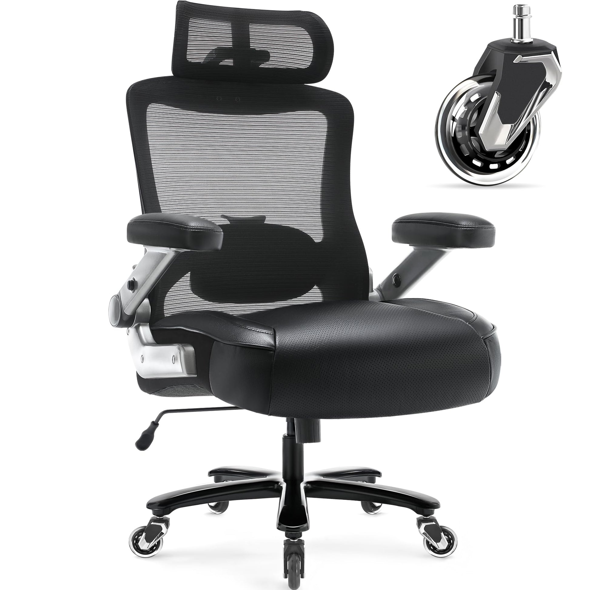 Big and Tall Office Chair 600lbs with 3D Flip Arms Adjustable Headrest - Heavy Duty Large Wheels Executive Computer Desk Chair, Ergonomic Lumbar Support Mesh High Back Plus Size Chair for Adults