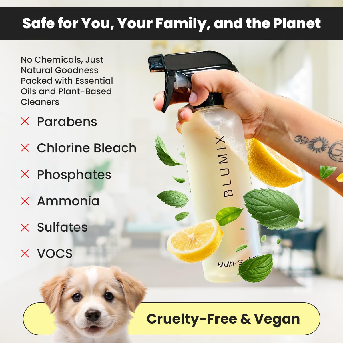 Blumix Multi-Surface Cleaner Refill Tablets – 6 Count | Fresh Lemon Scent | Eco-Friendly, Biodegradable, Plastic-Free Cleaning Refills for Spray Bottles – All-Purpose Household Use
