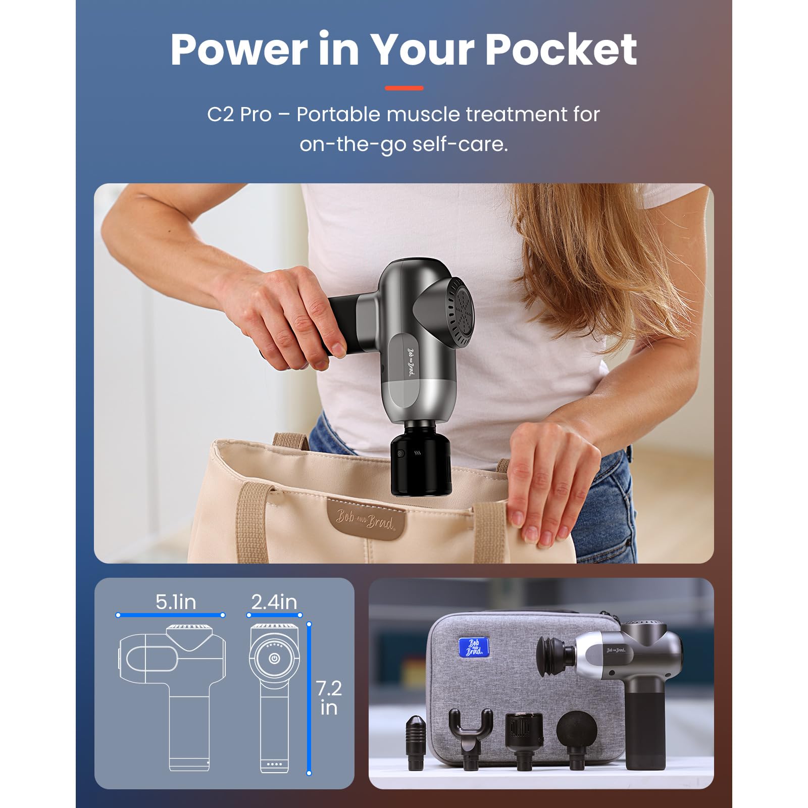 BOB AND BRAD C2 Pro Massage Gun with Heat and Cold Therapy, Mini Massager Gun Deep Tissue, Heated Professional Electric Back Massager for Athletes, Handheld Massager