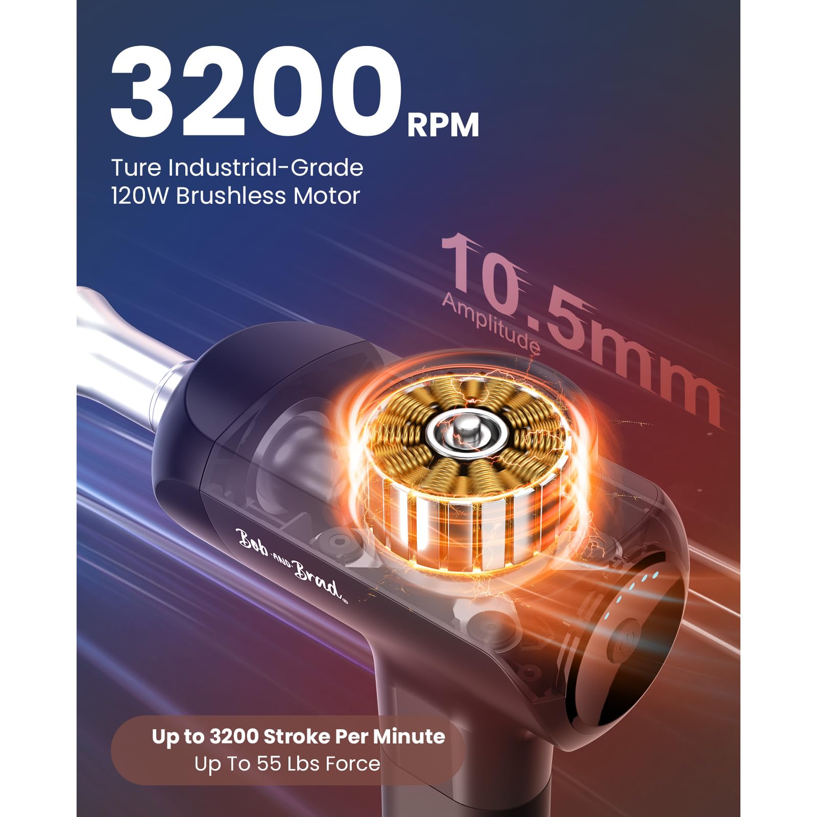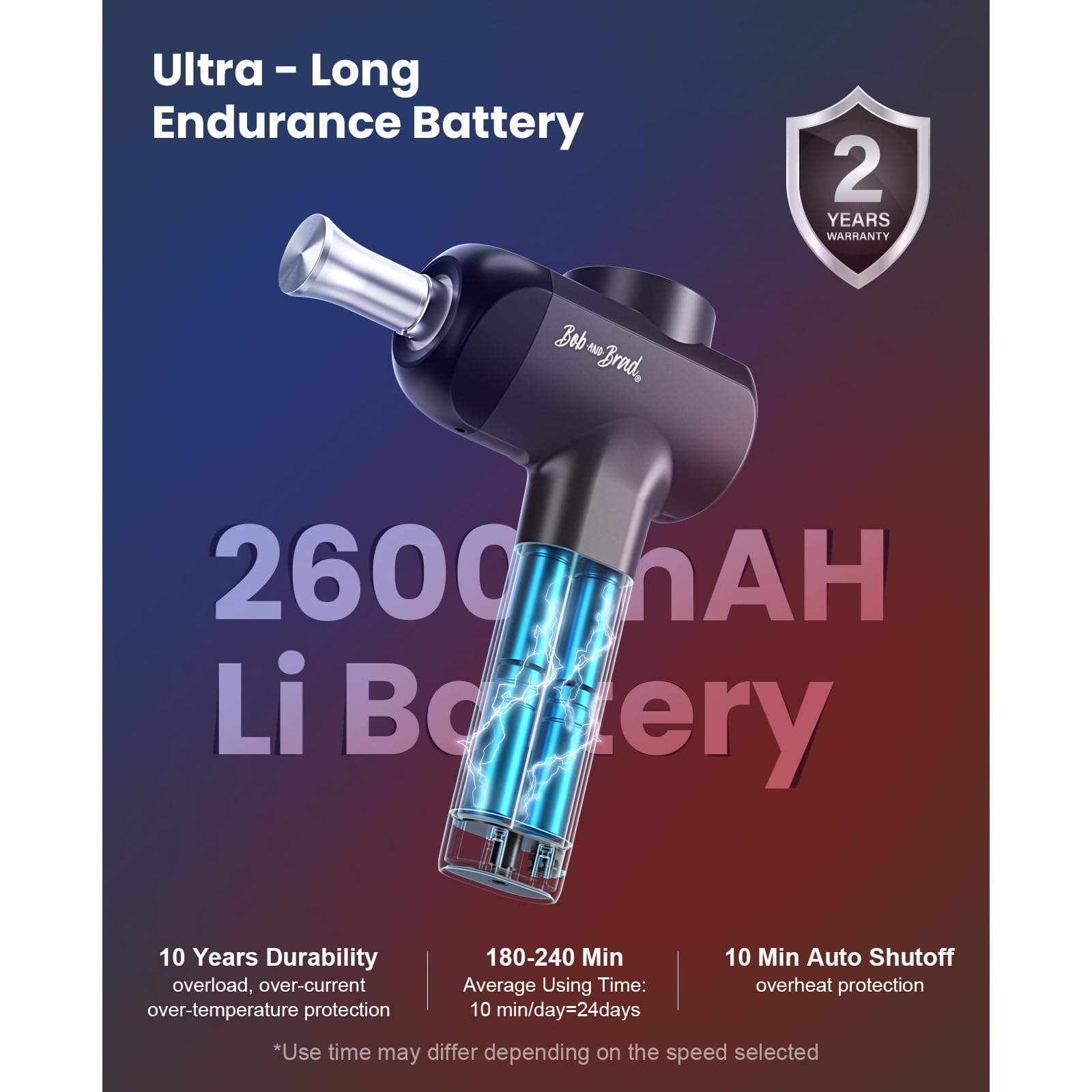- 5-Customizable Massage Experience: The ability of this Bob and Brad heat and cold massage gun to tailor the massage experience with adjustable 5 speeds of rpm(2000,2300, 2600, 2900, 3200) for a more personalized approach to muscle recovery. The extended long ergonomic handle of 9.5inches design and weighs only 1.9 pounds for ease of use.