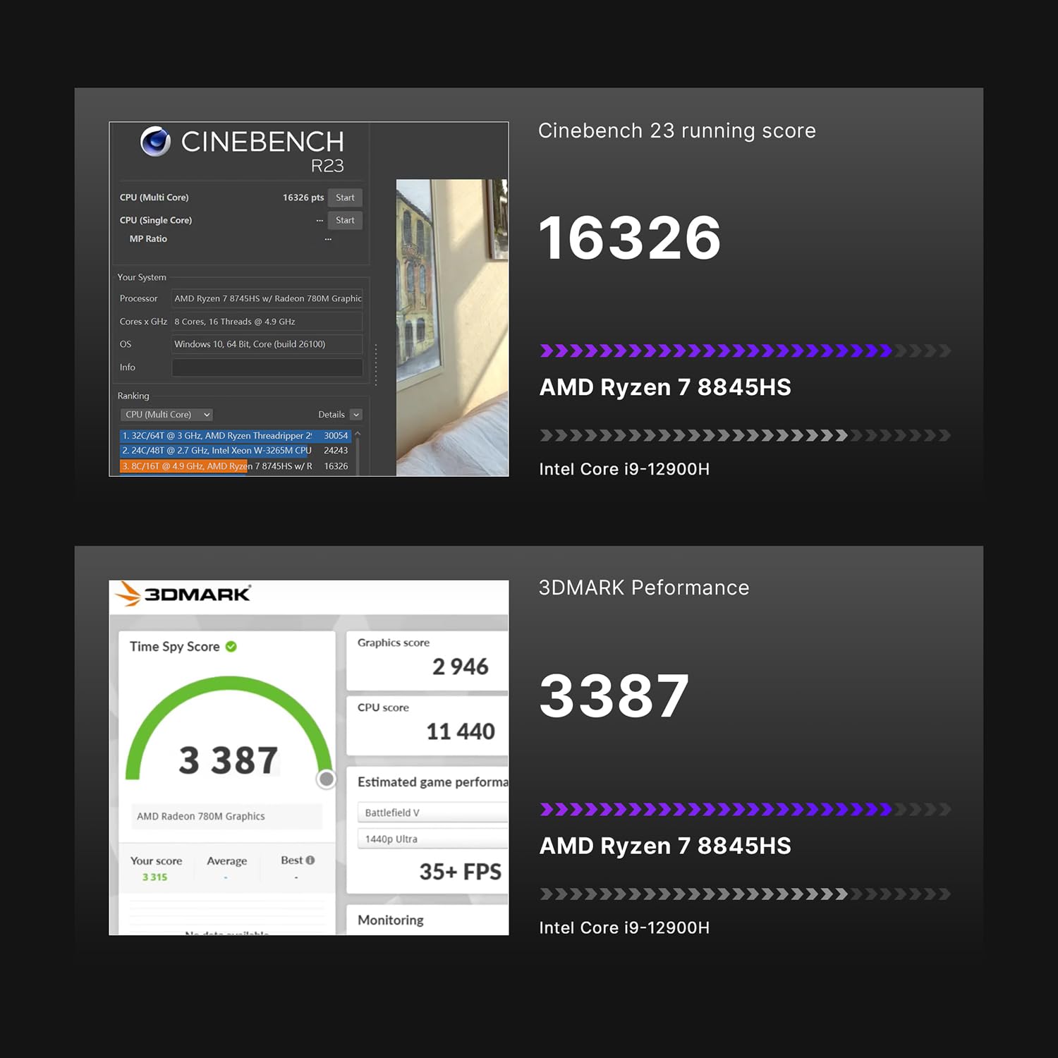 - 【Radeon 780M Graphics Acceleration】Equipped with AMD Radeon 780M GPU, this PC handle 4K@60Hz gaming and accelerates creative tasks like Blender rendering and DaVinci Resolve color grading. Stream VR content or design complex 3D models with crisp visuals and minimal latency.