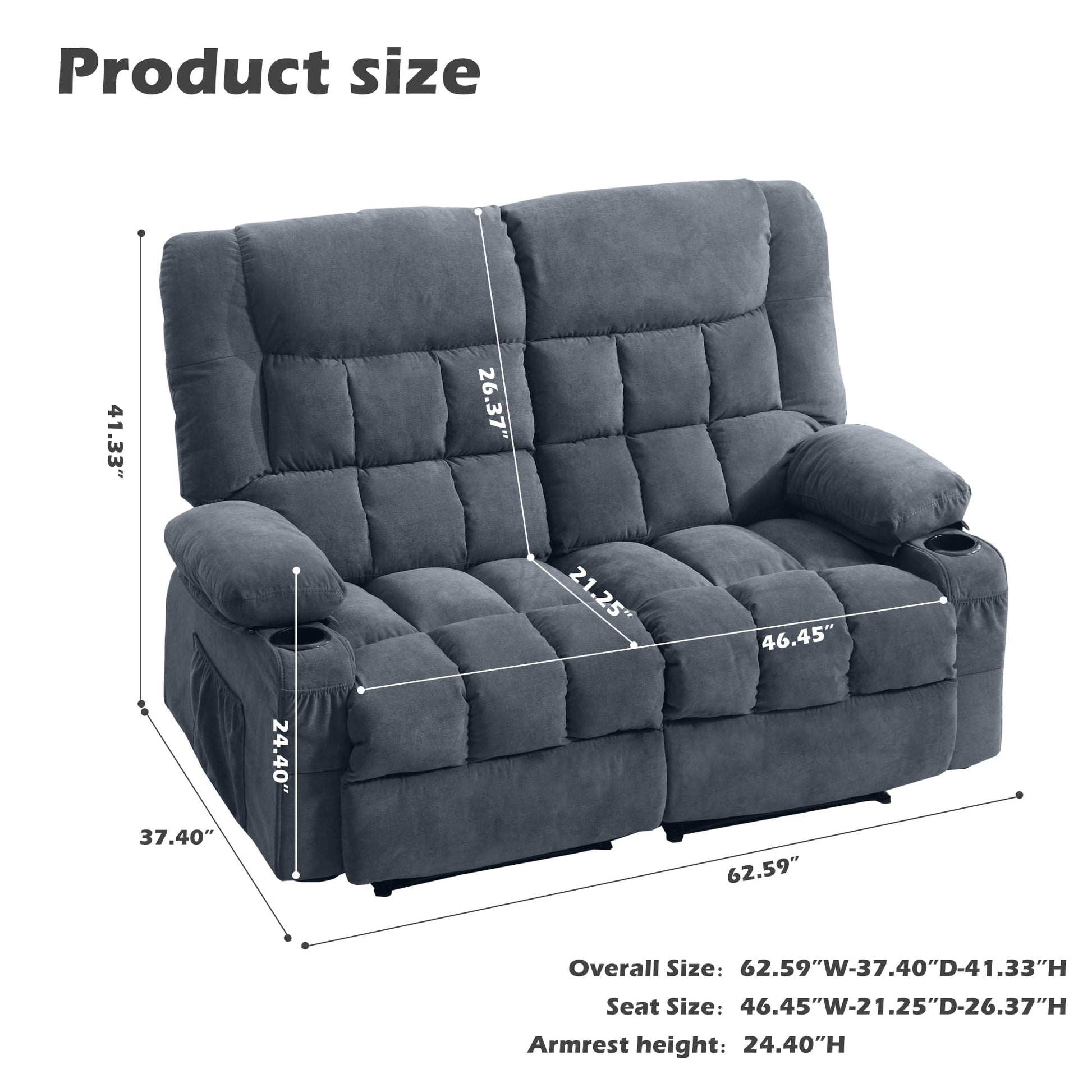 BOSMILLER Reclining Loveseat with Cup Holders for Living Room 2 Seat Manual Loveseat Recliner with Side Pocket