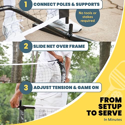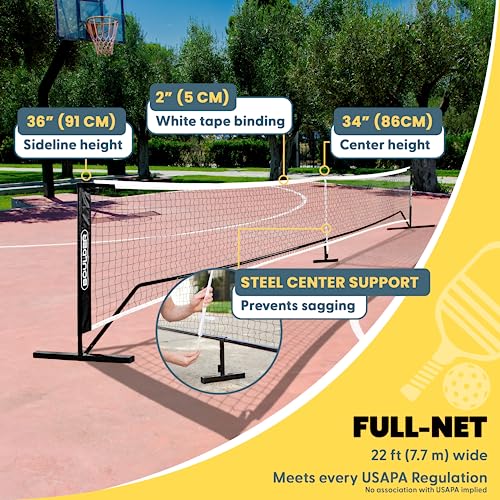 - Meets USAPA Regulations: Our full court pickleball net set is designed to meet USAPA standards, ensuring a perfect fit for your pickleball court. It measures 22 feet from the inside of one post to the inside of the other post, with a sideline frame height of 36 inches and a center frame height of 34 inches.