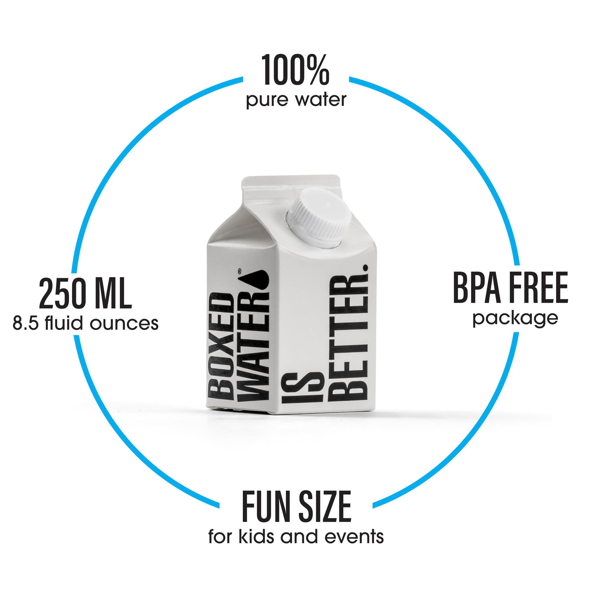 - MINI PLANT-BASED BOXES – Better than bottled water or can water, our boxes are made of paper from sustainable, well-managed forests.