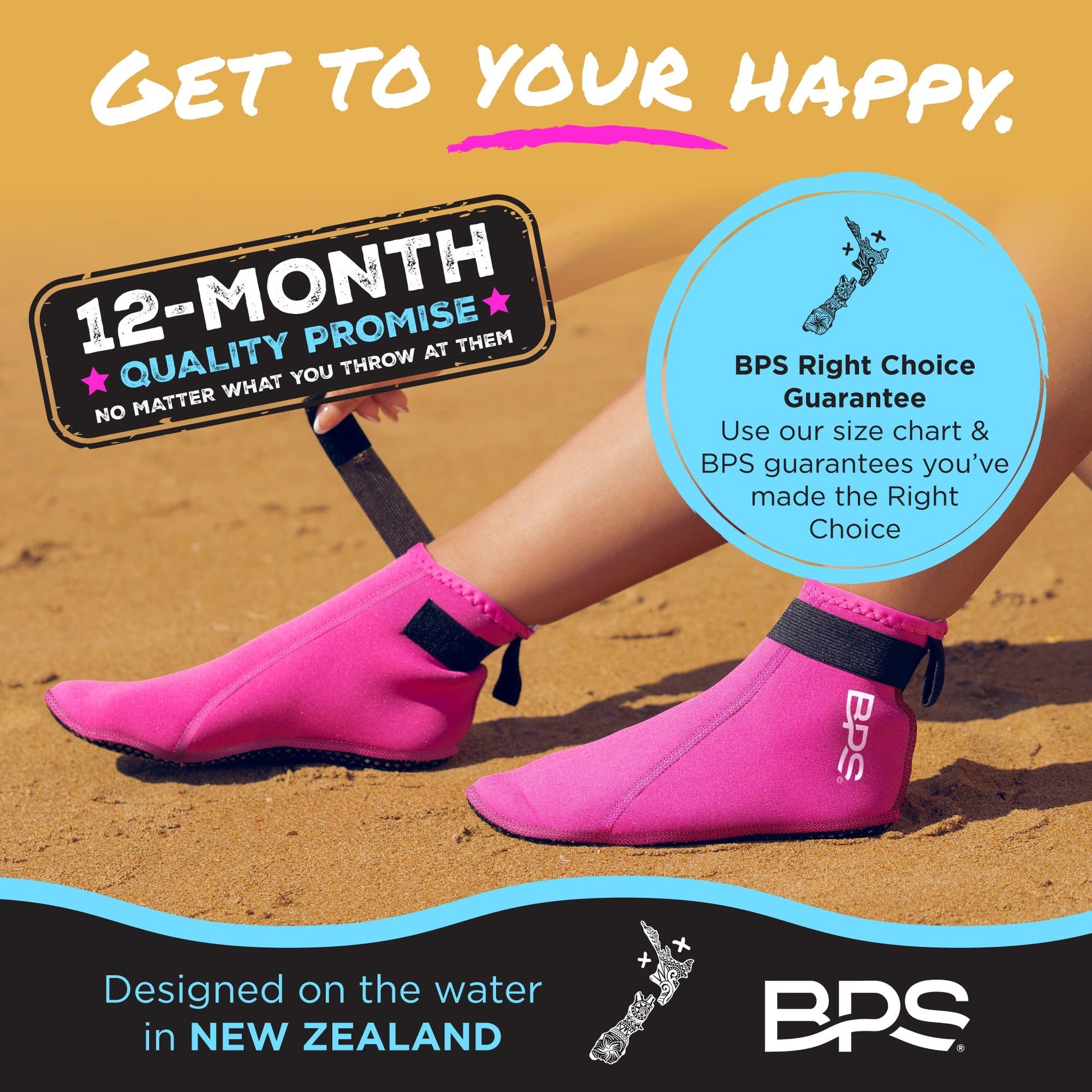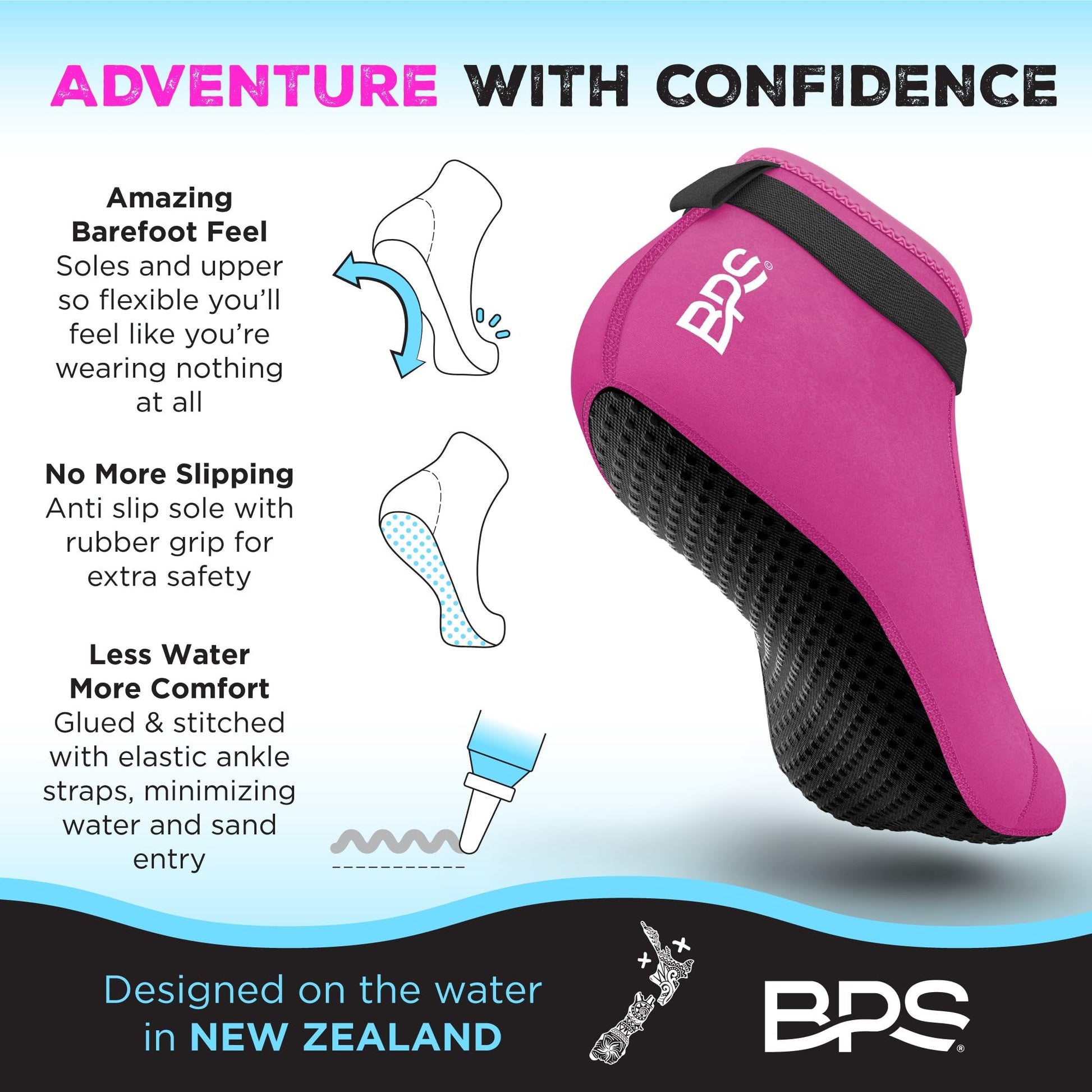 • BUY. RELAX. SMILE. 💯 BPS has you covered. Experience that amazing ‘Barefoot feeling’ thanks to soles and uppers so comfortable you will feel like you are wearing nothing at all. Perfect water socks for women and men. And no more slipping as we have added a rubber grip pattern to our dive socks to provide traction on slippery surfaces. Have fun choosing a colour that reflects your personality, and relax knowing your swim socks are guaranteed for 12 months by BPS no matter what you throw at them.