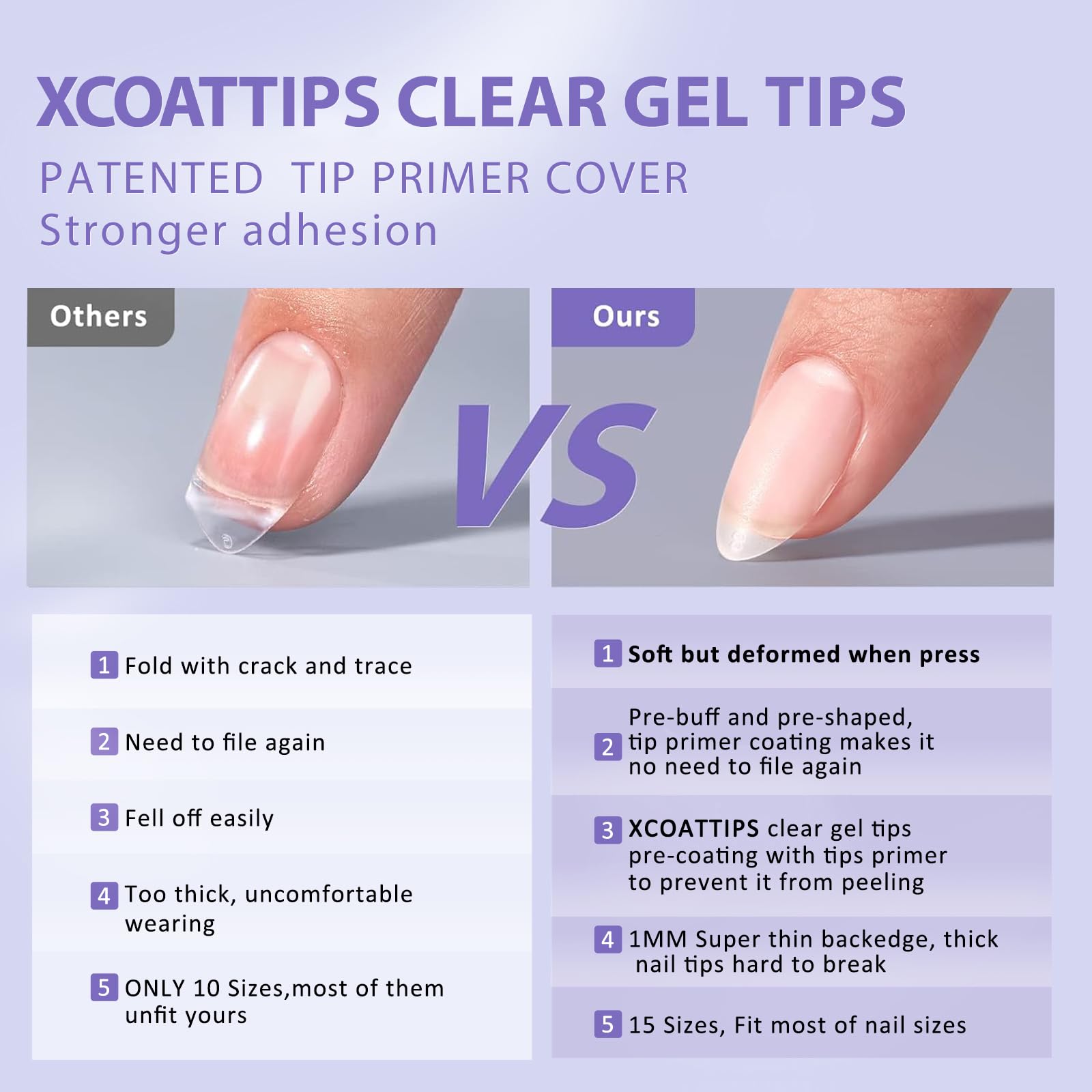 - PATENTED XCOATTIPS GEL TIPS WITH TIP PRIMER: With the patented technology, BTArtbox XCOATTIPS GEL TIPS are well combined with soft gel tips and tip primer, which makes the nail back comes with a coarser matte and more effectively remove the nail grease in advance, so that the nails are stronger adhesion with nail glue and not easy to fall off. NO need to file again. Create a light-cured, preshaped nail enhancement in 20 minutes or less! Save more time, save more money