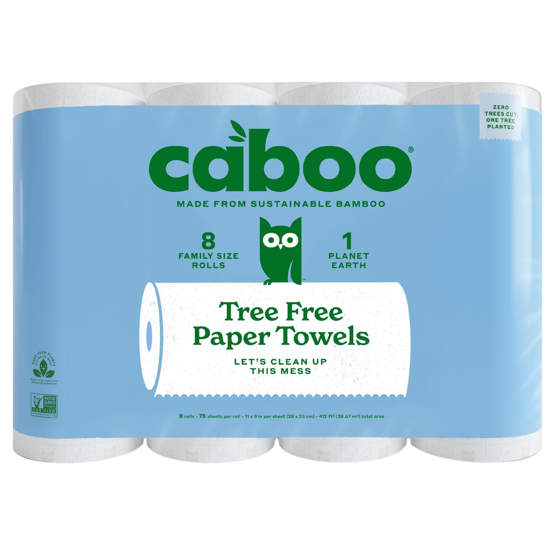 Caboo Tree Free Paper Towels, 6 Rolls, Eco Friendly, Earth Friendly, Sustainable Kitchen Paper Towels with Strong 2 Ply Sheets