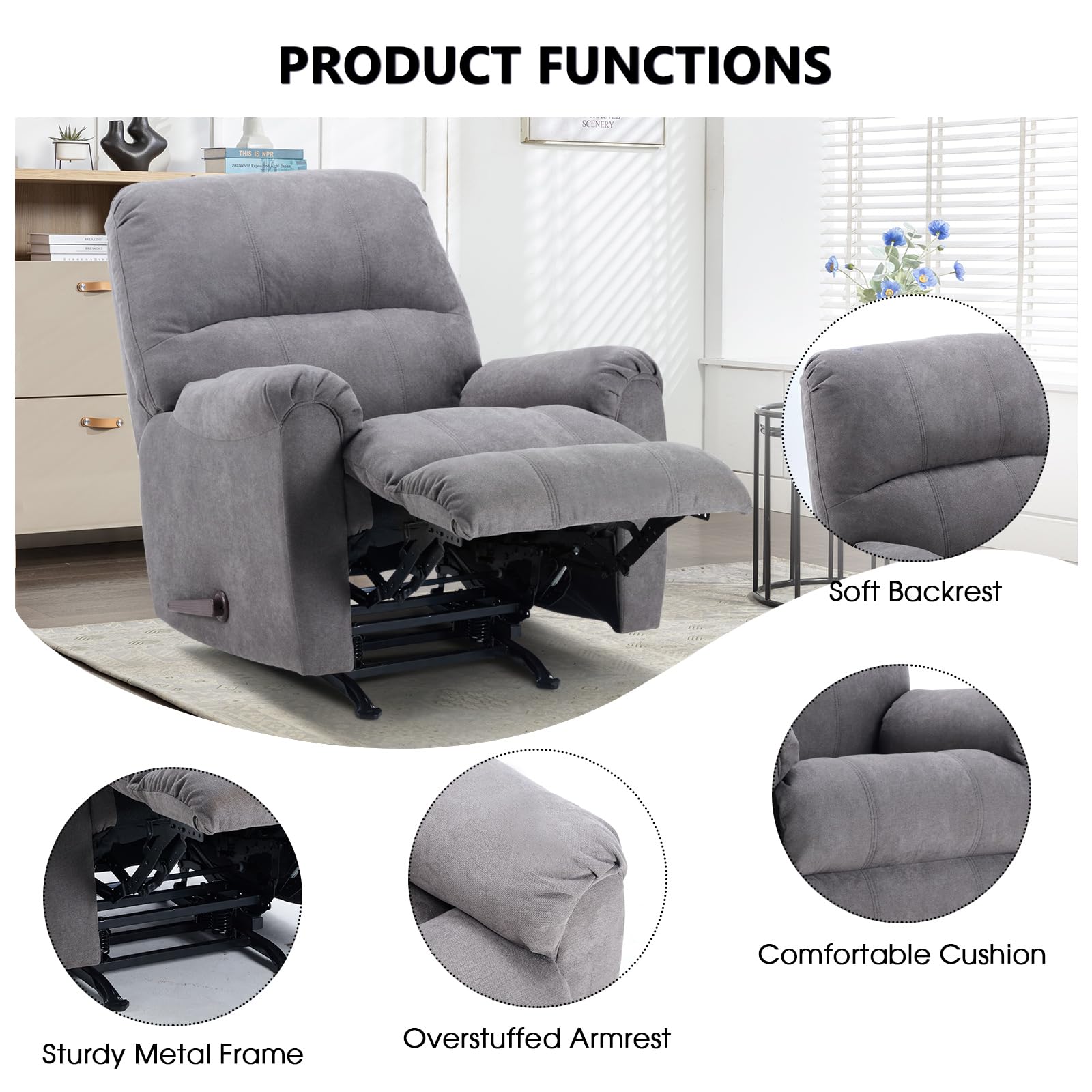CANMOV Rocker Recliner Chair for Adults,Manual Recliner Chair with Overstuffed Backrest and Armrests, Soft Fabric Manual Rocking Reclining Sofa for Living Room,Grey