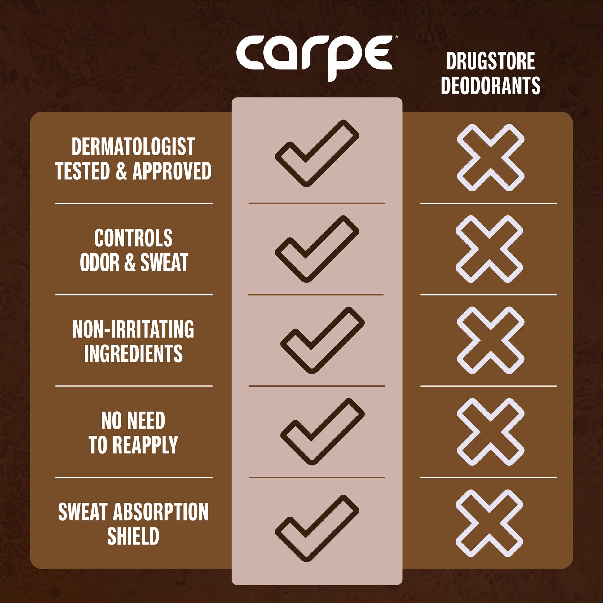 - DEVELOPED WITH DERMATOLOGISTS: Carpe’s scientifically developed formula has been independently tested for safety and efficacy, and proven to be a leading over-the-counter sweat treatment.
