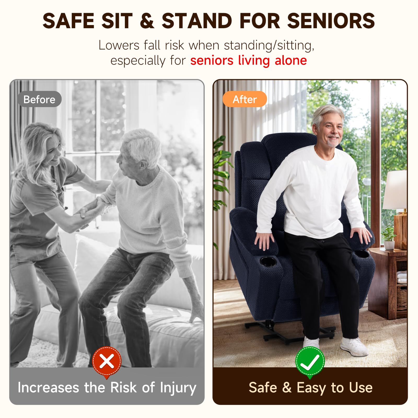 - 【Regain Confidence Post-Surgery or Daily】Ideal for hip/knee recovery or aging independently, this recliner lets users sit and rise safely with an effortless remote. Its heavy-duty frame supports 350 lbs, offering secure stability for daily use without relying on caregivers.