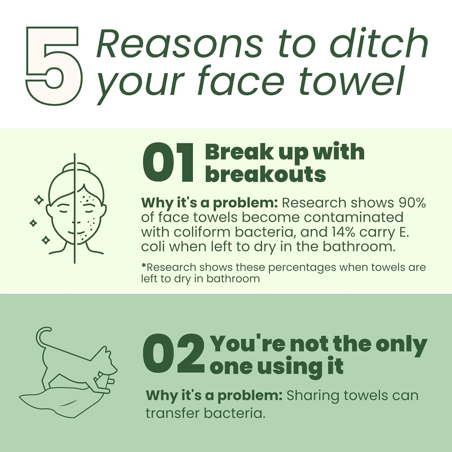 50 Dermatologist tested and approved biobased face towels. Clinically shown to help individuals achieve visibly clearer skin, less irritation, and to reduce the appearance of redness. Always ha