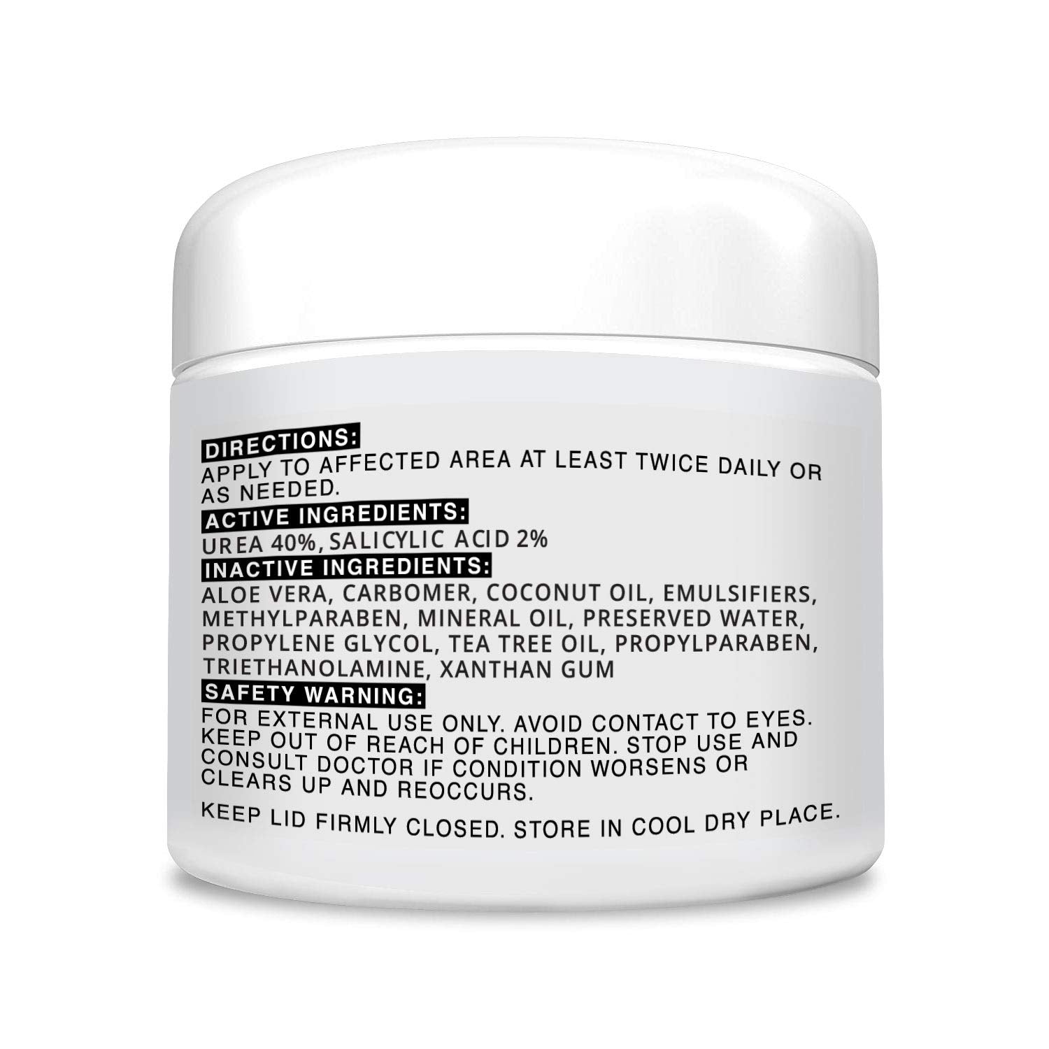 CLEAR Urea Cream 40 Percent Plus 2% Salicylic Acid (4oz) Made in USA | Urea Foot & Hand Cream Softens Cracked Heels & Dry Skin with Tea Tree & Coconut Oil - Callus & Corn Treatment