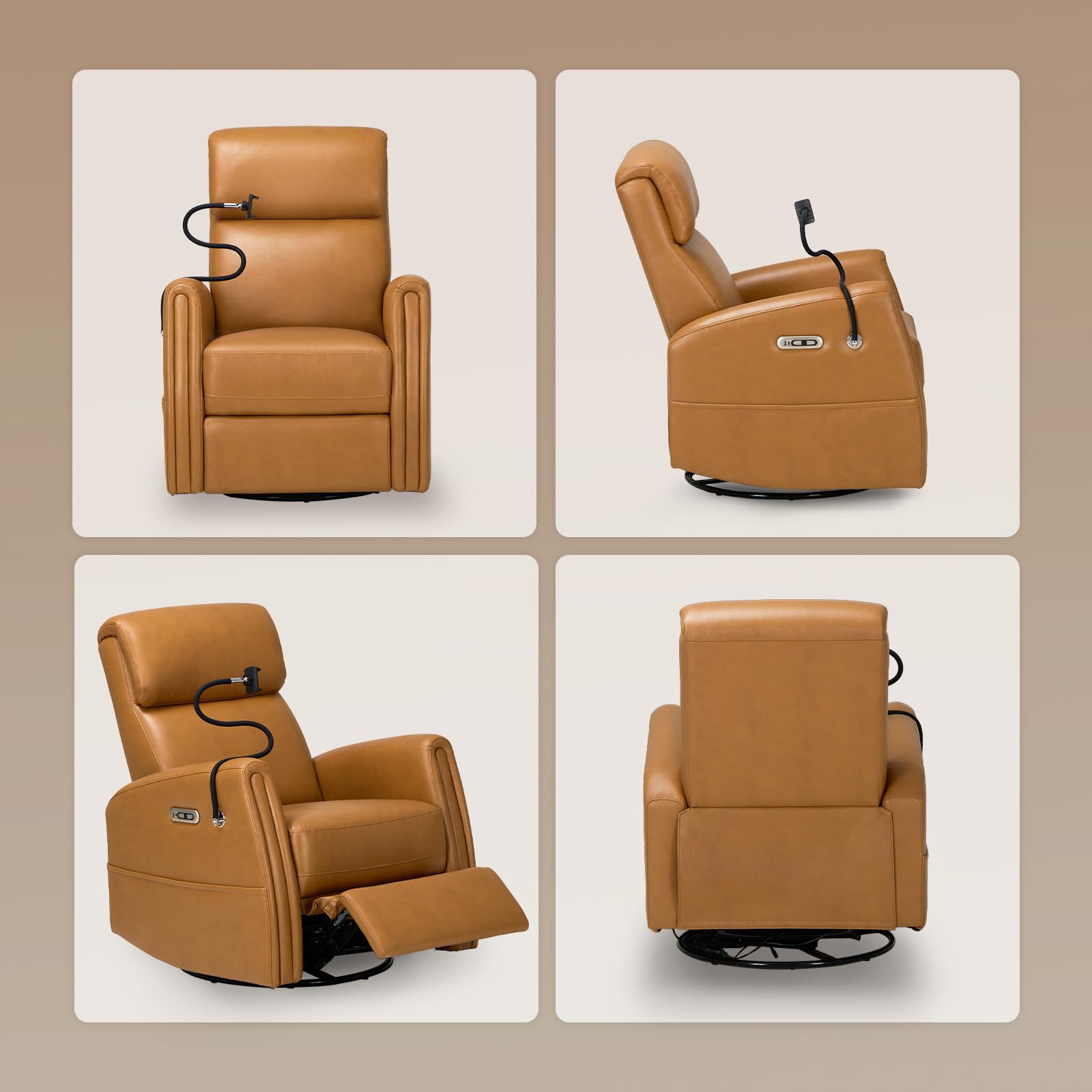COLAMY Electric Power Swivel Recliner Chair, PU Leather Rocking Chair, 270° Swivel 145° Recliner Chair with Built-in Charging Ports for Living Room, Home, CognacBrown