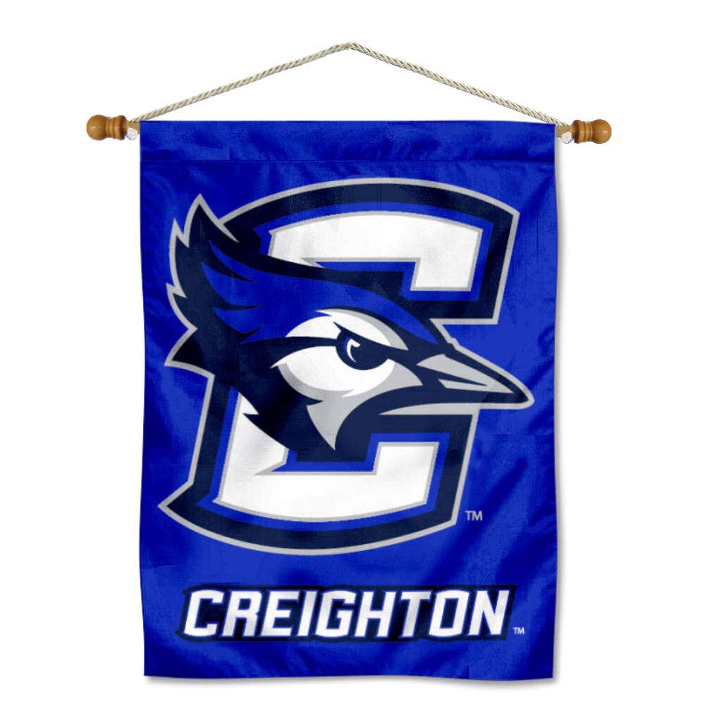 Details: Creighton University Banner Flag and Wood Banner Pole Set includes a large 30x40 inch college banner which is made of thick double sided 2-ply Polyester with sewn-in liner, includes a 36 inch wide hardwood and 3/4 inch diameter banner pole, and offers solid wood finial ends and thick white hanging cord. These 'Ready to Display' no tools needed wall banners are Officially Licensed and University and College Approved and the double sided screen printed logos are viewable and readable correctly on both sides. The removable banner pole can fit sleeved banner flags up to 30 inches wide.