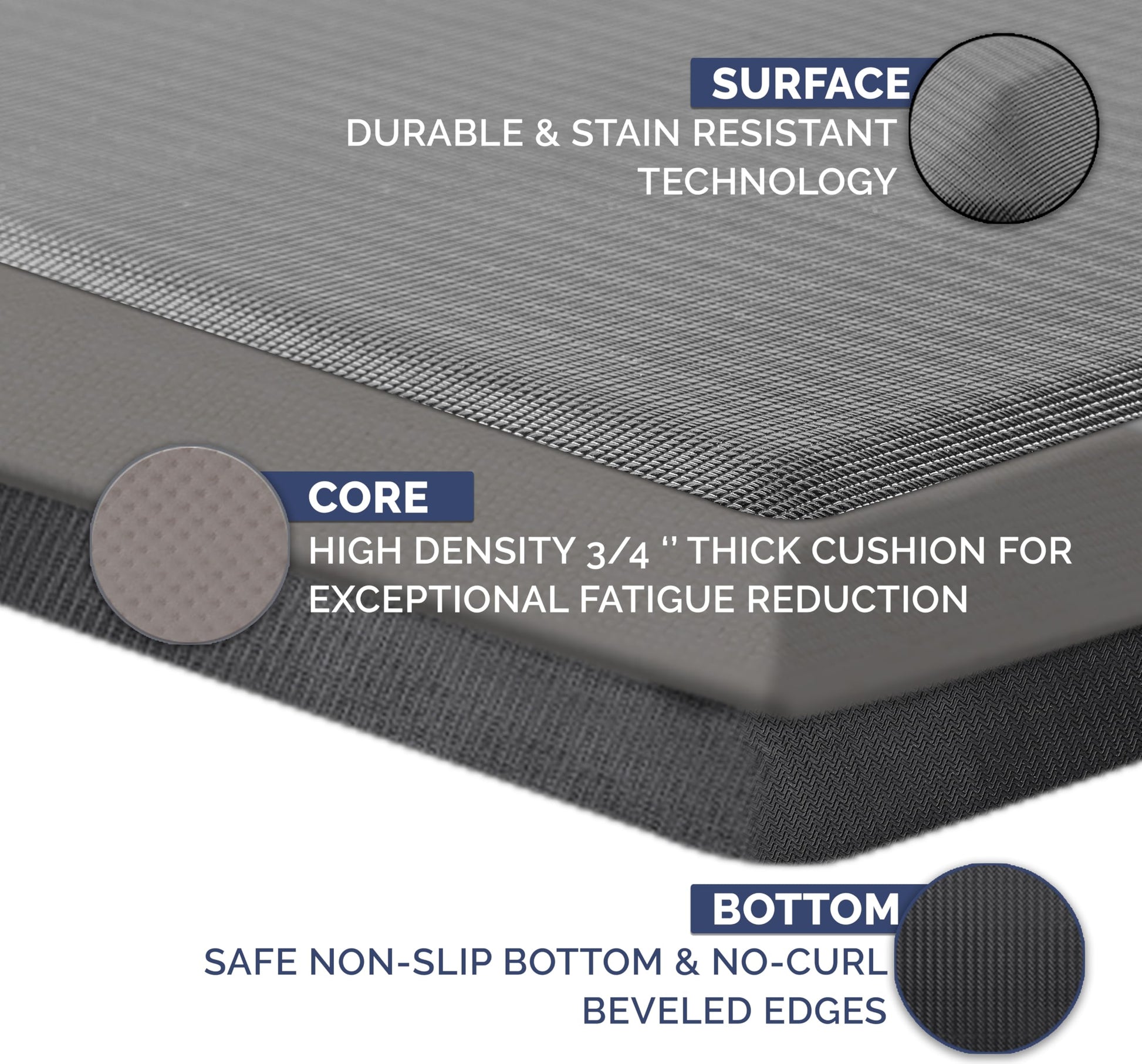 - Premium Quality Construction: The ComfiLife cushioned mat core is made of 3/4 thick, high-density memory foam that reduce discomfort on feet, knees, legs, and back while standing for an extended period. This kitchen mats cushioned anti-fatigue offers exceptional durability and long-lasting support. Perfect for high-traffic areas like the kitchen, office, or garage.