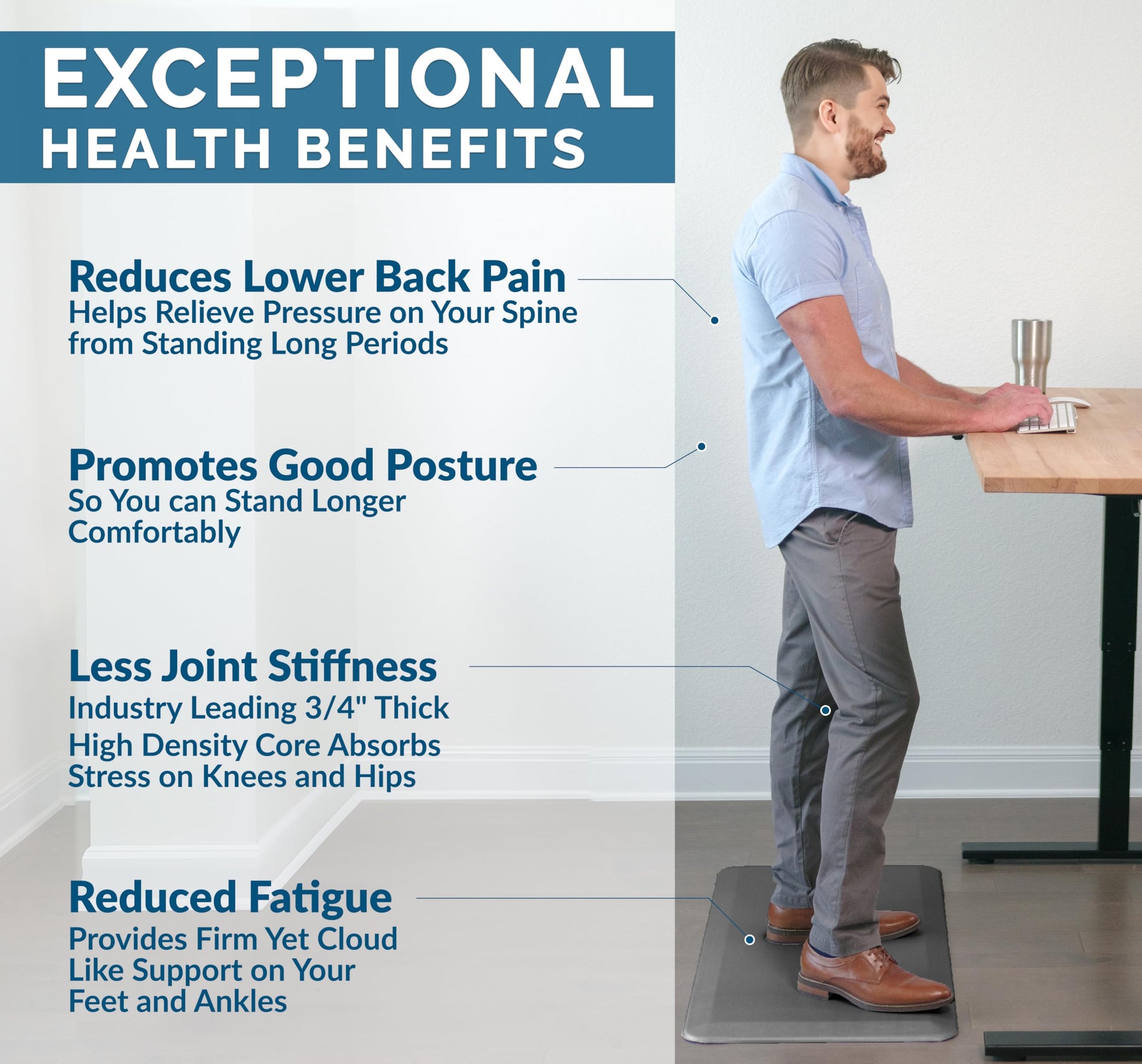 ComfiLife Anti Fatigue Floor Mat – 3/4 Inch Thick Kitchen Mats for Floor, Standing Desk Mat, Kitchen Rug – Comfort at Home, Office – Durable – Stain Resistant – Non-Slip Bottom (20" x 32", Charcoal)