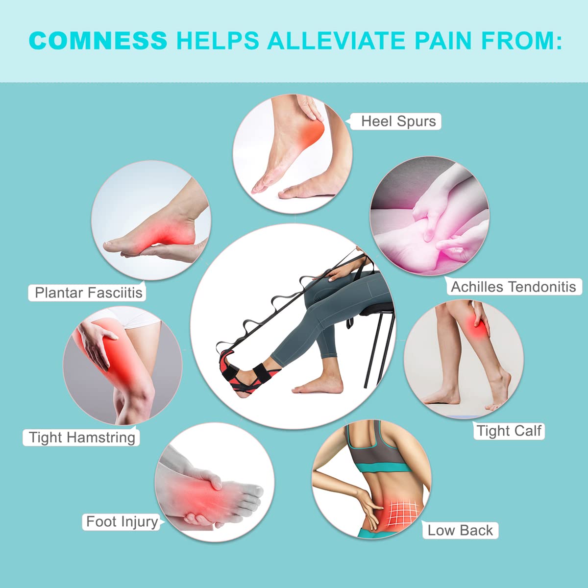 comness Foot and Calf Stretcher-Stretching Strap For Plantar Fasciitis, Heel Spurs, Foot Drop, Achilles Tendonitis & Hamstring. Yoga Foot & Leg Stretch Strap. (Red)