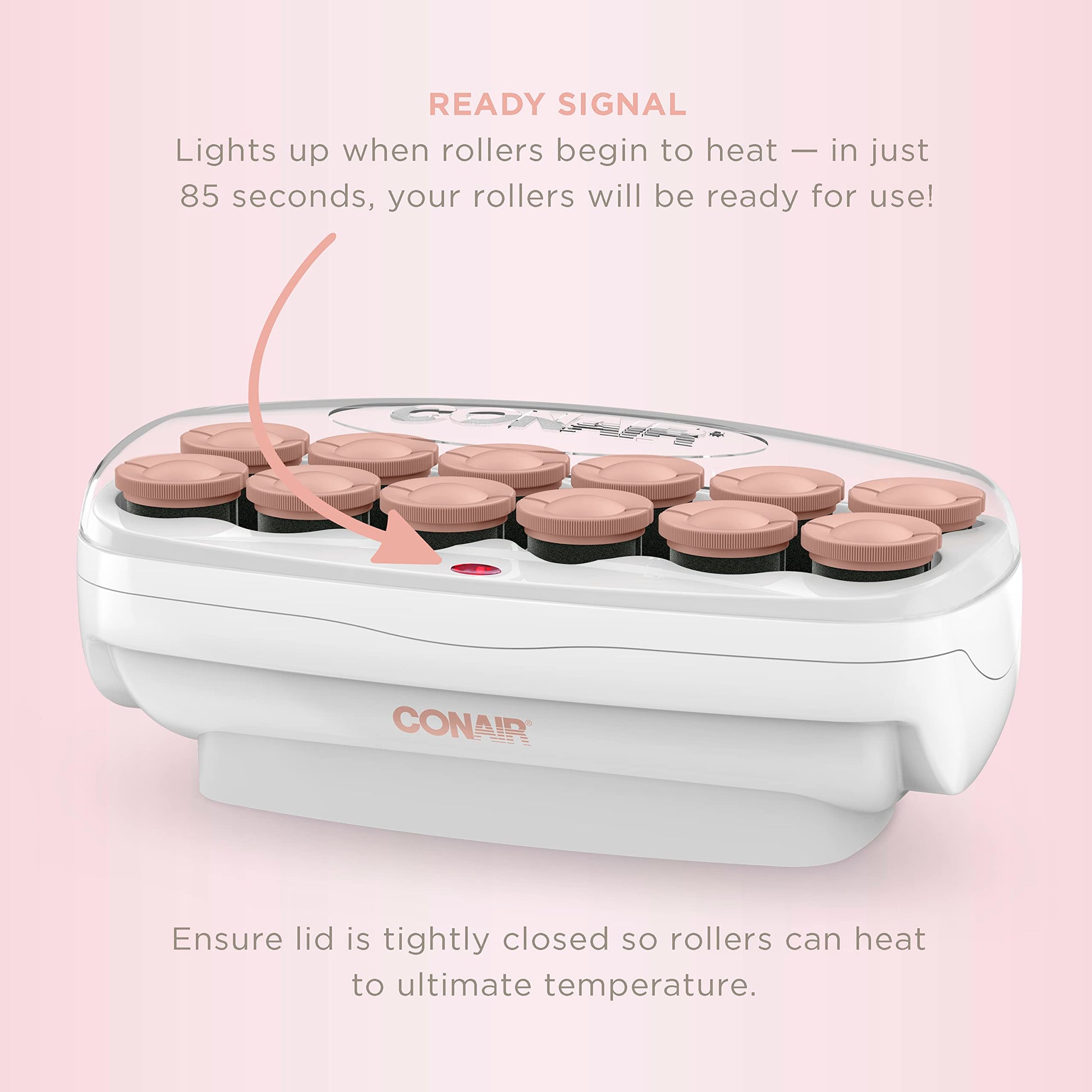 - Heat Wave: To ensure that your hot rollers heat up, place the hot roller container on a flat surface with the cover tightly closed to prevent heat from escaping. Wait 85 seconds for the hot rollers to get up to a temperature between 140F-230F before using.