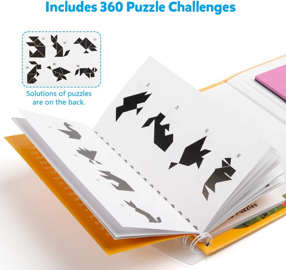 Coogam Travel Tangram Puzzle - Magnetic Pattern Block Book Road Trip Game Jigsaw Shapes Dissection STEM Games with Solution for Kid Adult Challenge - IQ Educational Toy Gift Brain Teasers 360 Patterns