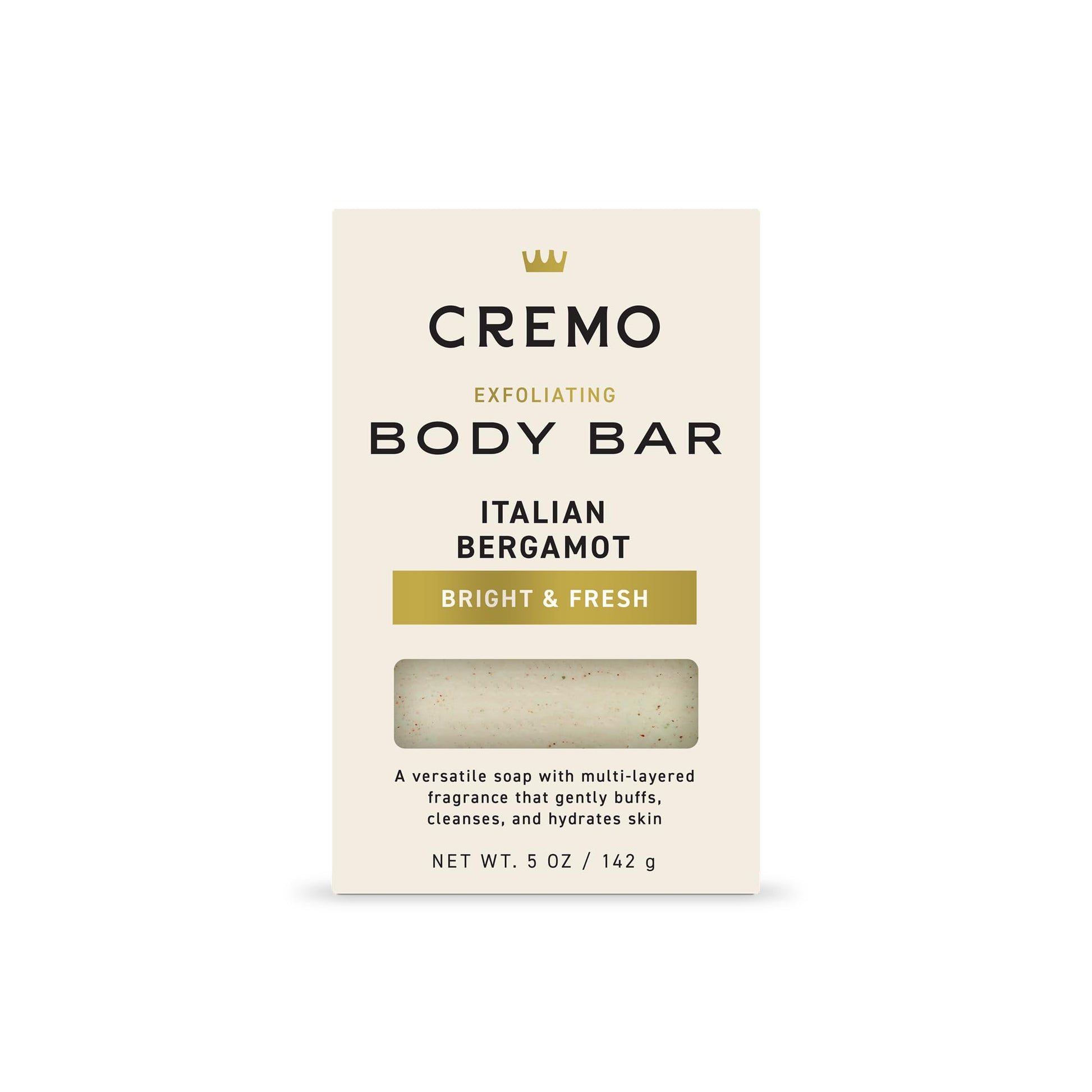 Cremo Exfoliating Body Bar for Men, Italian Bergamot Scent, Multi-Layered Fragrance That Buffs, Cleanses and Hydrates Skin, 5oz