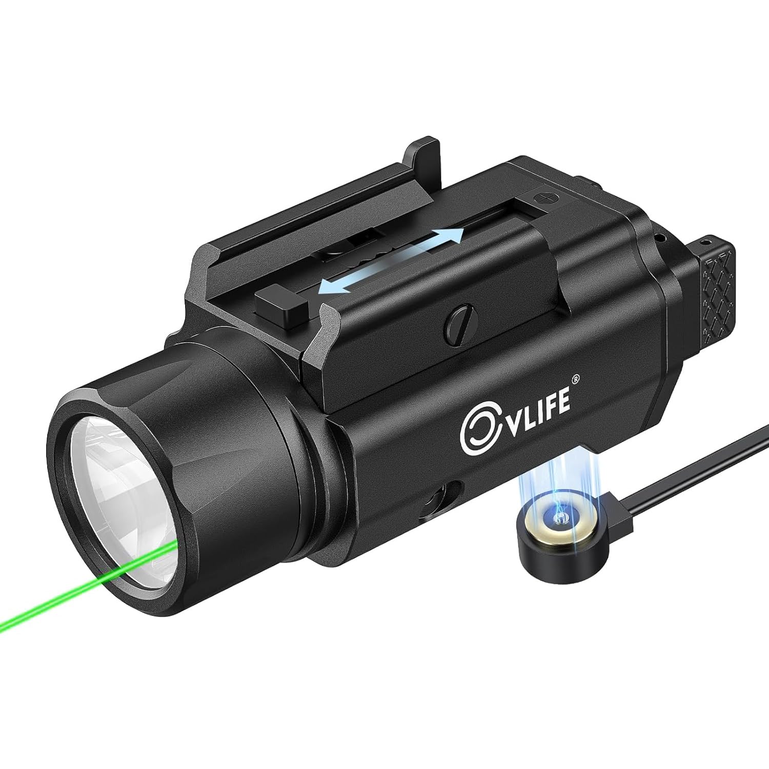CVLIFE 1500 Lumens Pistol Light Laser Combo, Strobe & Memory Function for Green Laser Light Combo and Picatinny Flashlight with Adjustable Rail Magnetic USB Rechargeable Compact Tactical Flashlight