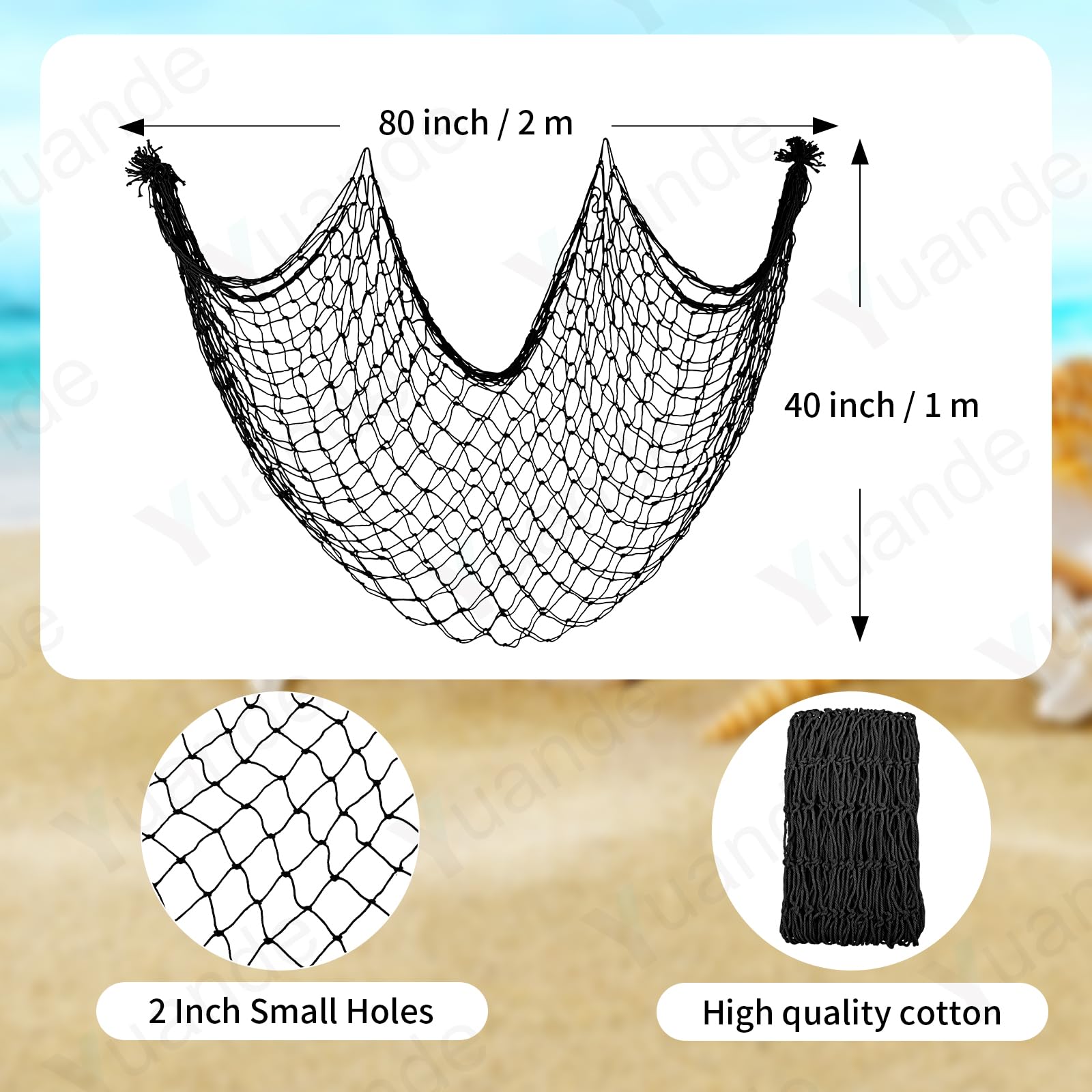 - 2 Pieces fish net - Fishnet decor(black) measures 80x40 inches, thickness is 3mm, great for home, party. Larger fish net wall decor can be well decorated for your various nautical themed parties.mermaid parties, pirate parties, Hawaiian parties, birthday parties, baby showers.