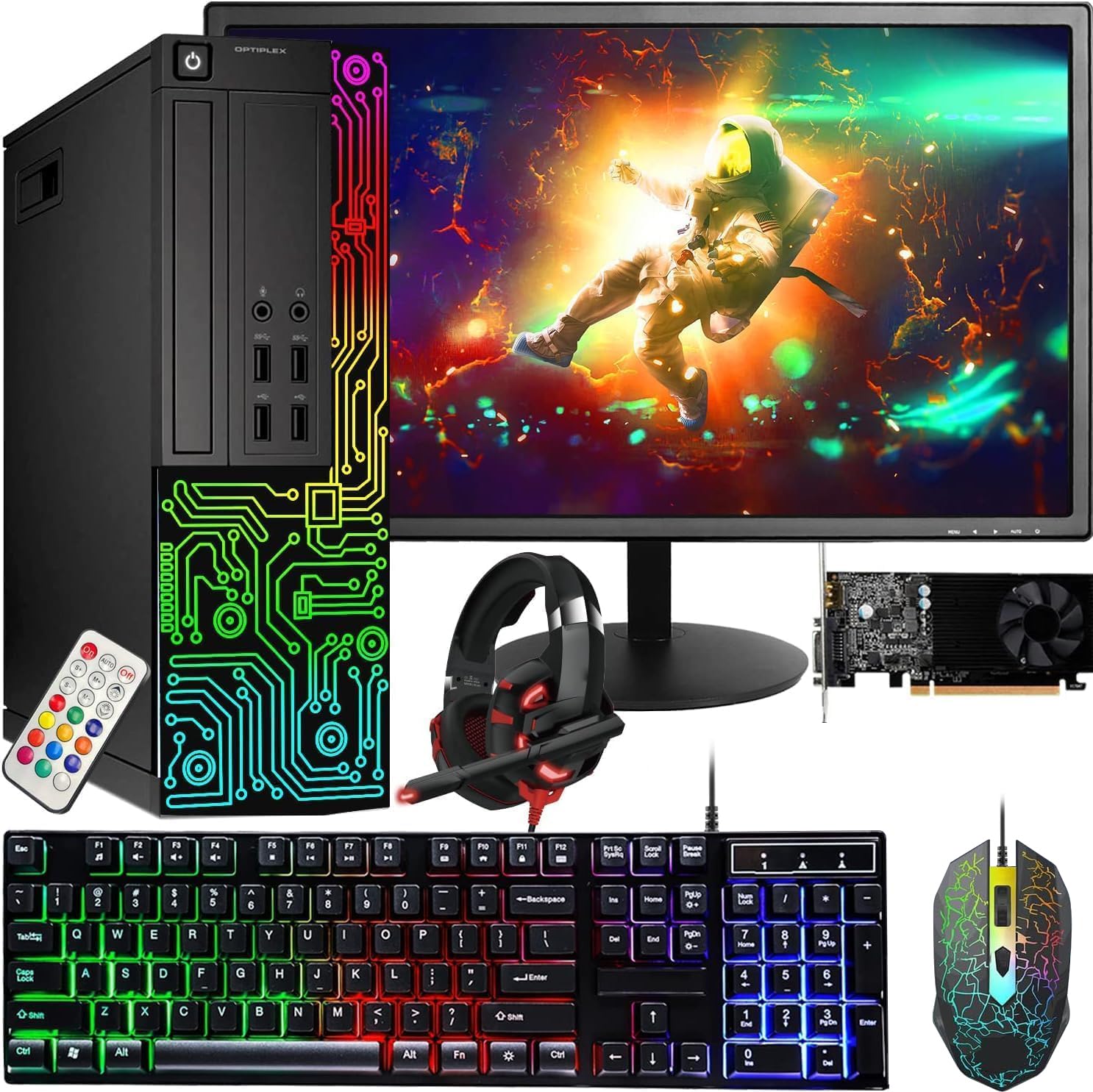 Dell Gaming OptiPlex Desktop RGB Computer PC, Intel Core i7, GeForce GT 1030 2GB GDDR5, 16GB RAM, 512GB SSD, 24 Inch HDMI Monitor, Keyboard Mouse and Headset, WiFi, Windows 10 Pro (Renewed)