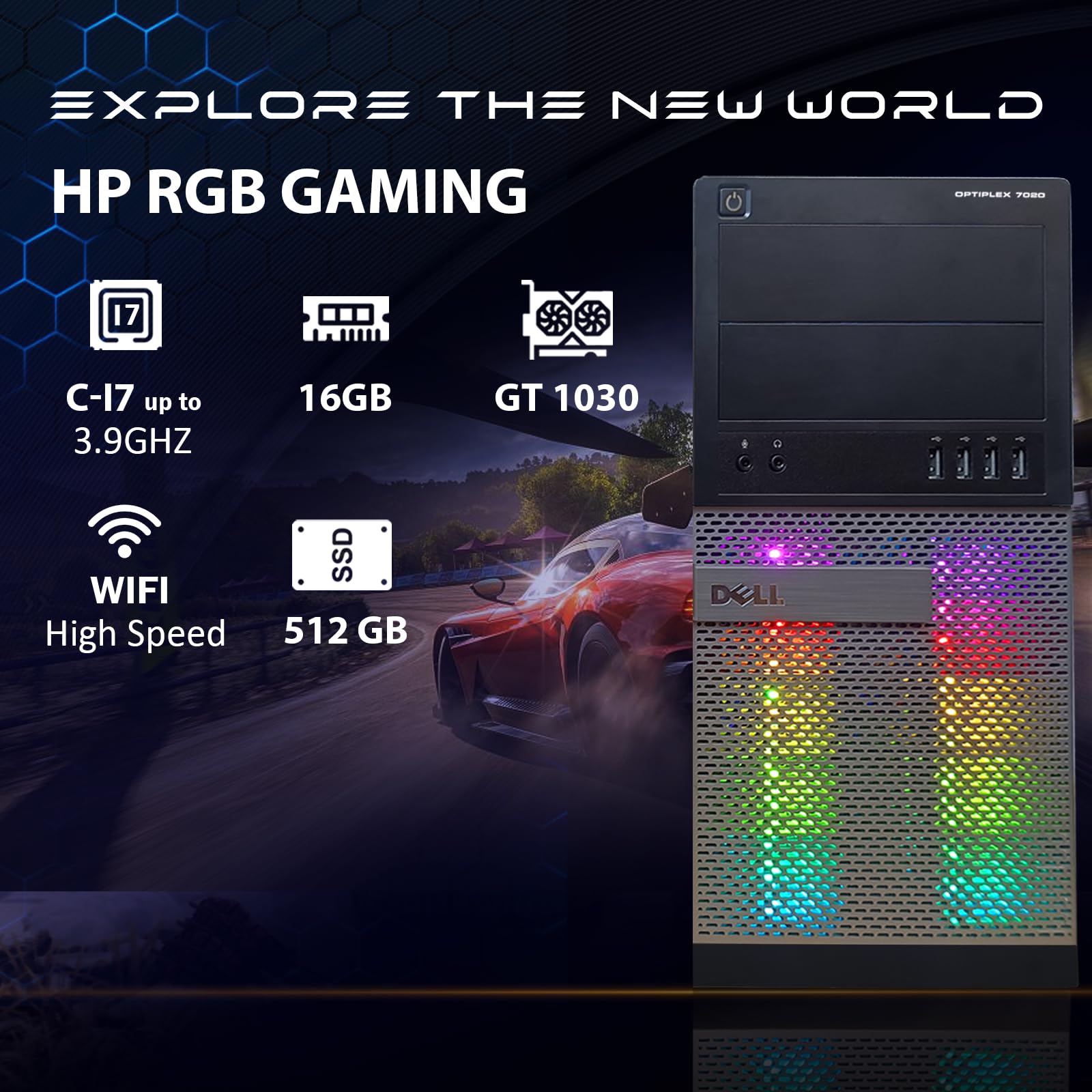 Dell Optiplex 7020 Gaming Desktop PC - Intel Core i7 4th Gen 3.4GHz, NVIDIA GeForce GT 1030 2GB, 16GB RAM, 512GB SSD, HDMI, DVI, VGA, New Keyboard, Mouse, Wi-Fi, Windows 10 Professional(Renewed)