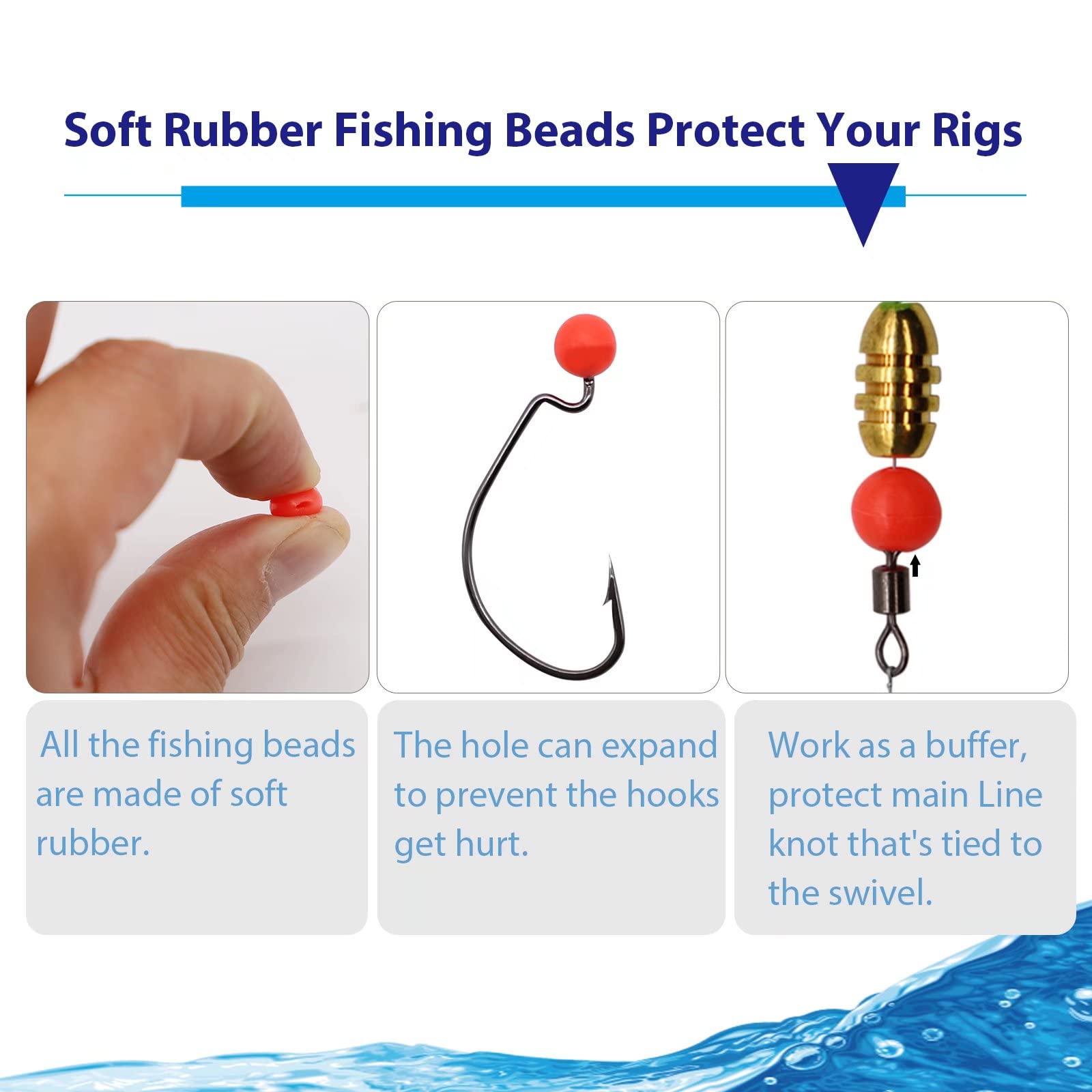 • MADE OF SOFT RUBBER: All the fishing beads are made of high quality soft rubber. They can work as a buffer, preventing the leads from damaging the main Line knot that's tied to the swivel. Great for heavy sinkers.