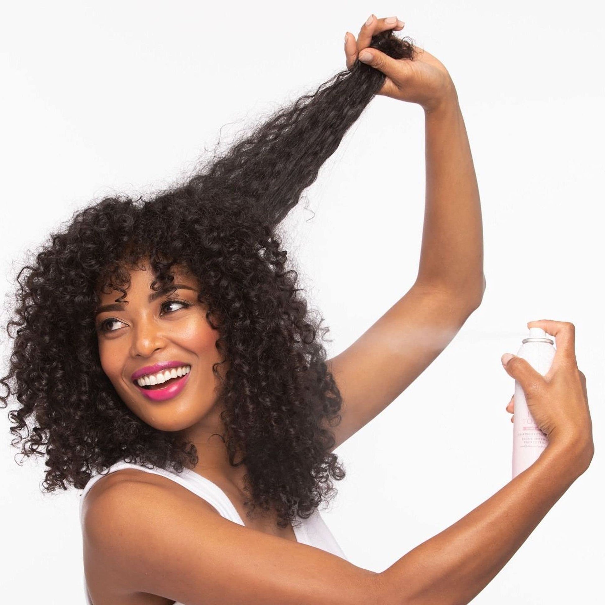 Details: Hot Toddy's lightweight spray protects dry hair from heat styling with curling, straightening and styling irons (up to 450°F/232°C). Marula Oil coats hair strands to help reduce damage from heat with a satin, frizz-free finish. Fire Tulip Extract helps protect against heat, leaving hair looking healthy and restored. Heat-Activated Rice Protein strengthens hair to help protect it against the drying and damaging effects of heat styling. UV Protectors shield hair from UVA and UVB rays and excessive heat that cause dryness and color fading. Coconut Colada fragrance with notes of coconut water, muguet, and coconut.