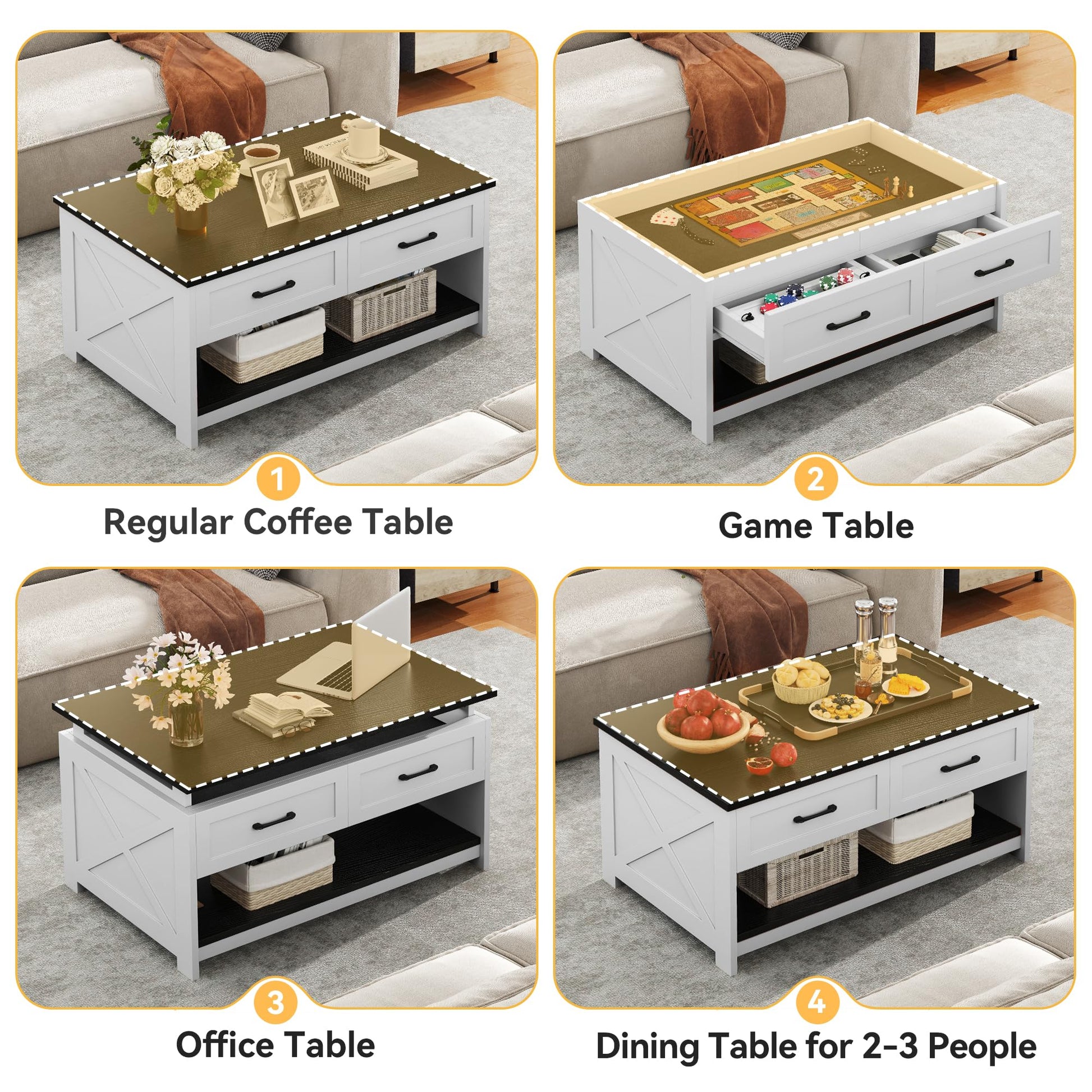 - Convertible Design: Features a removable tabletop, allowing seamless transition between a coffee table, board game table, puzzle table, or dining/work surface, perfect for multitasking and protecting ongoing games