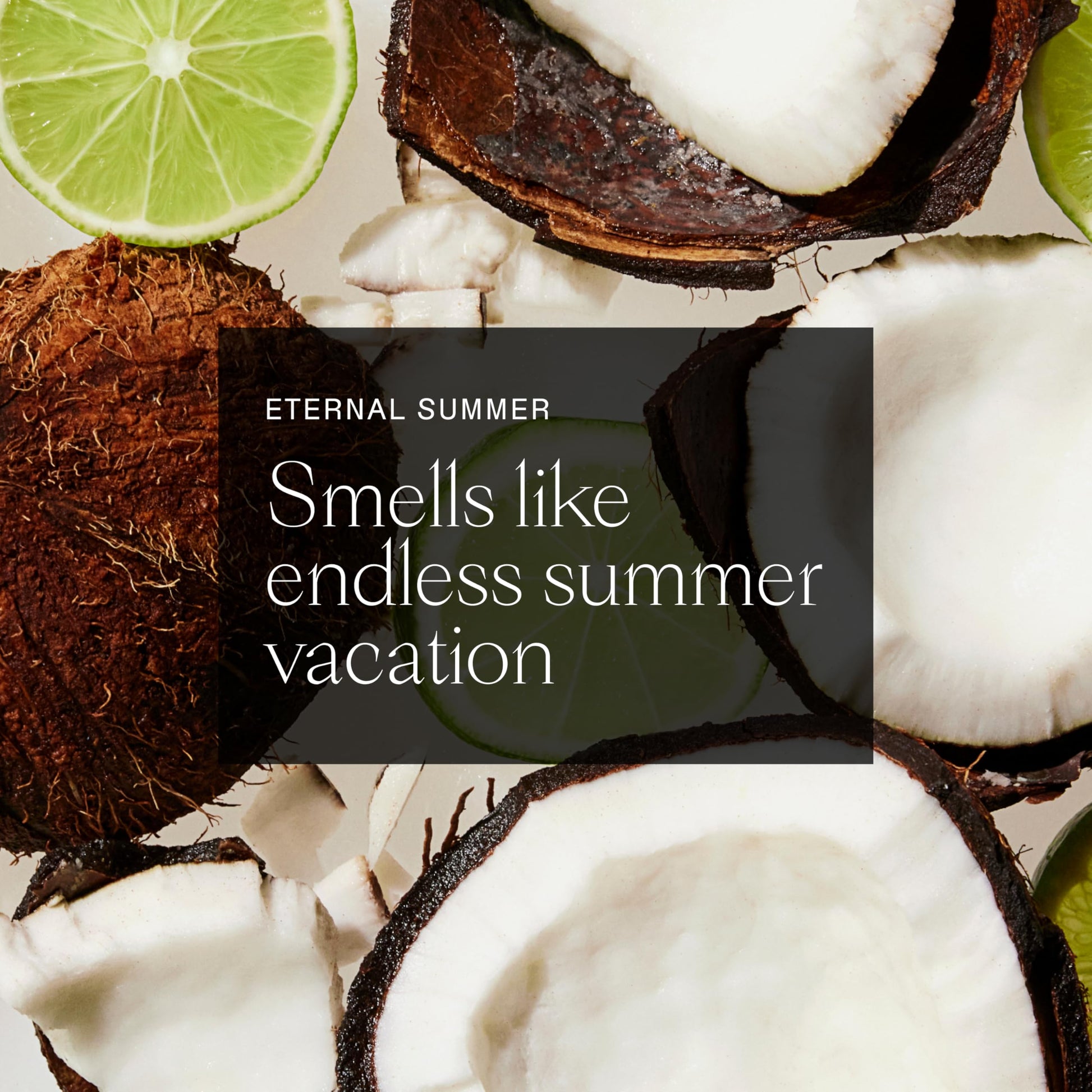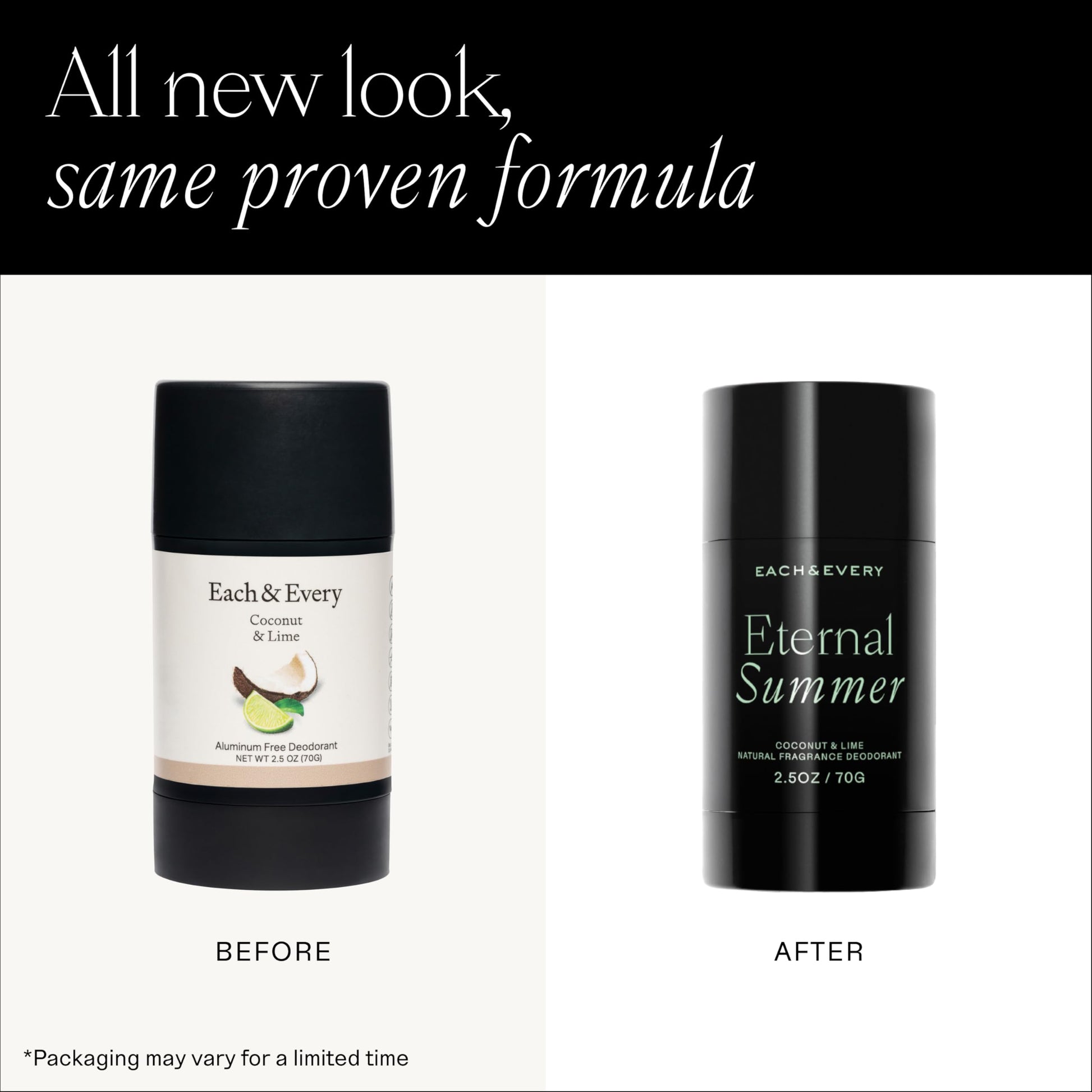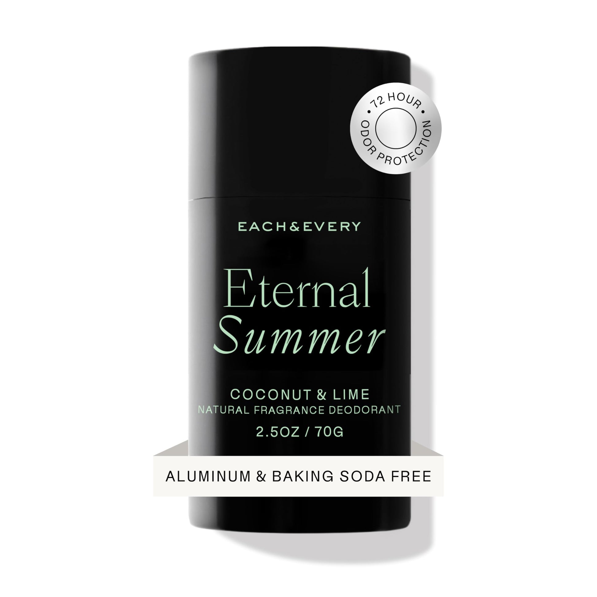 - Eternal Summer - This scent invites you to soak up the sun with notes of luscious coconut and a tropical twist of lime. Meanwhile, plush tapioca starch and conditioning coconut oil give this sensitive skin deodorant a smooth glide.