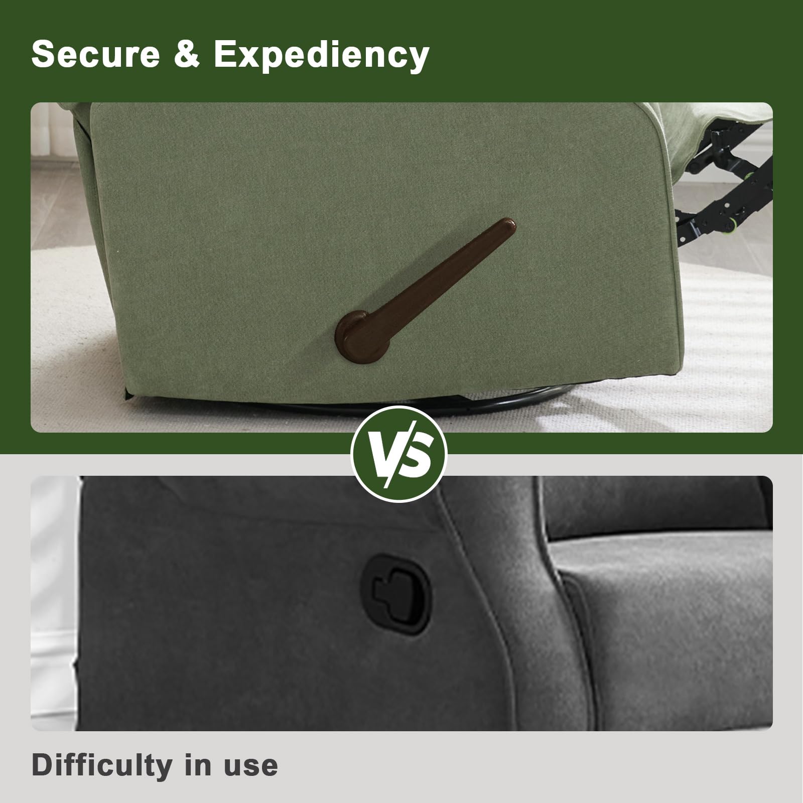 - 360° Swivel and Smooth Manual Recline Function:Enjoy full range movement with a 360° swivel base and easy-to-operate manual recline. Whether you're rocking your baby, reading a book, or just unwinding, you can easily find your perfect angle.