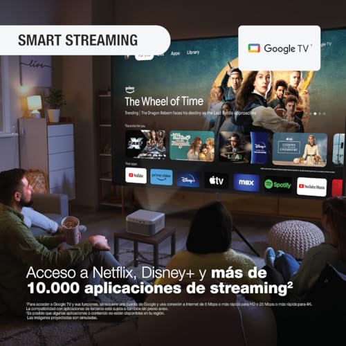 Details: Make every event a truly epic experience by watching your favorite content on an immersive picture up to 150'. Whether you’re binge-watching your favorite TV show, setting up a gaming event or hosting an outdoor movie night, the Epson EpiqVision Mini EF21 smart portable laser projector makes it easier than ever to bring your family and friends together to create memories that will last a lifetime. True 3-chip 3LCD technology produces an exceptionally bright and colorful display. And with laser-array projection technology, the Full HD picture with HDR color is simply amazing. Built-in Google TV (1) gives you access to over 10,000 streaming apps (2), including Netflix, Disney+ and even live TV (3) from apps like YouTube TV. So, it’s never been easier to discover what to watch. And with a compact design, proprietary EpiqSense technology (4) for easy setup and impactful internal audio, the Epson EpiqVision Mini EF21 is quite possibly the best portable streaming home entertainment projector available today.