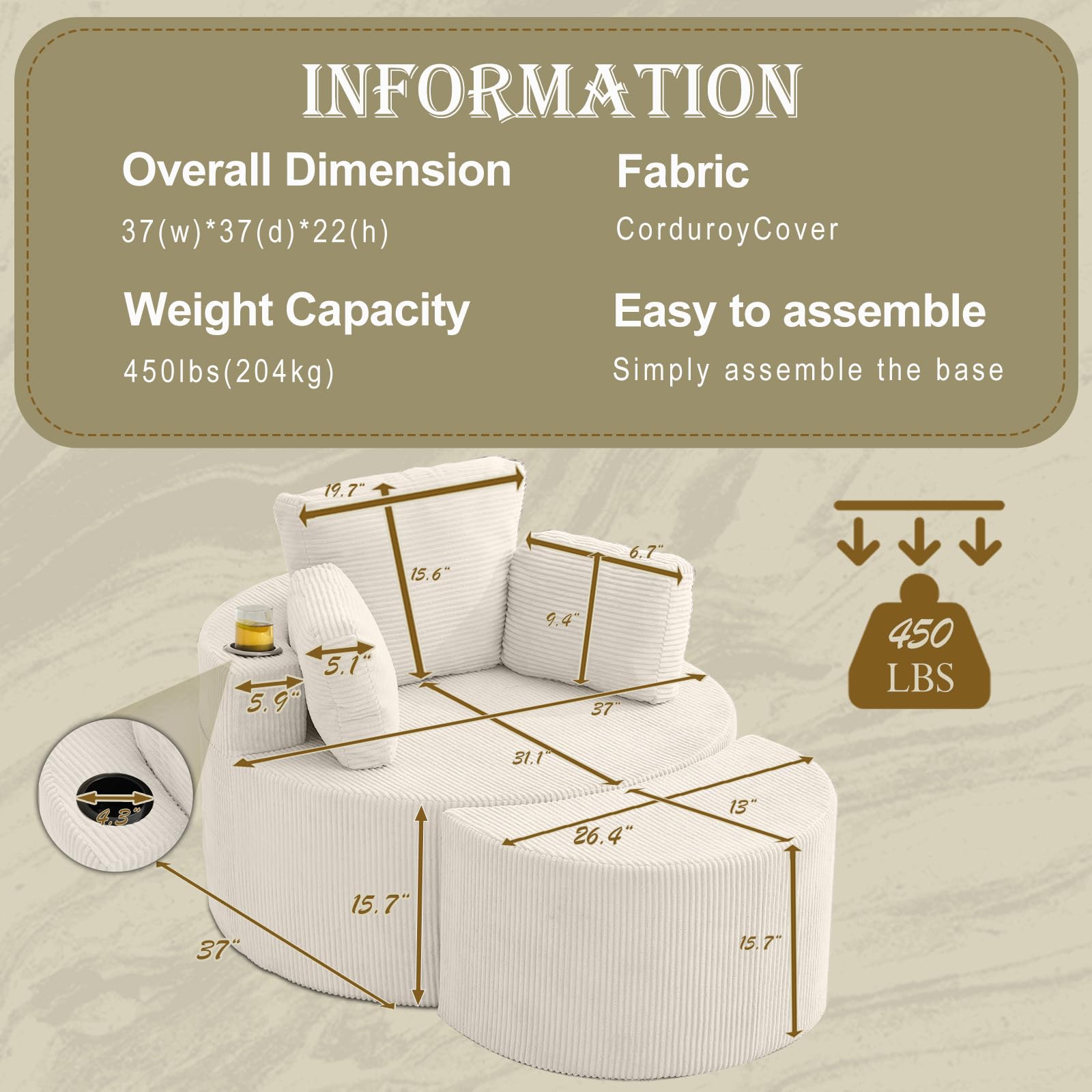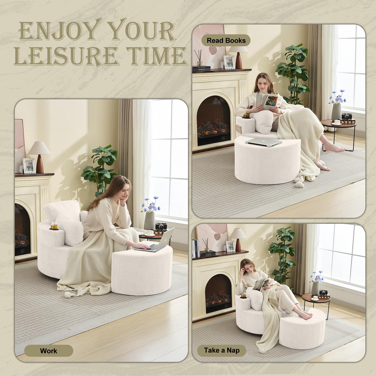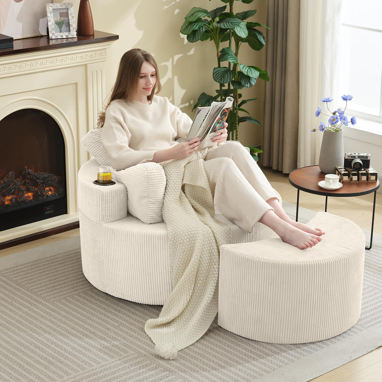 - Chair and Ottoman:Our barrel chair with Ottoman 37 Inch(W)204 kg/450 lbs.weight capacity provides you with more seating space and enhanced support.Designed for ultimate comfort,the cushioned ottoman is a great place to rest your feet and relax,and with the extra ottoman,you can comfortably recline on the cozy backrest with your feet up while reading a book or sipping a cup of coffee.