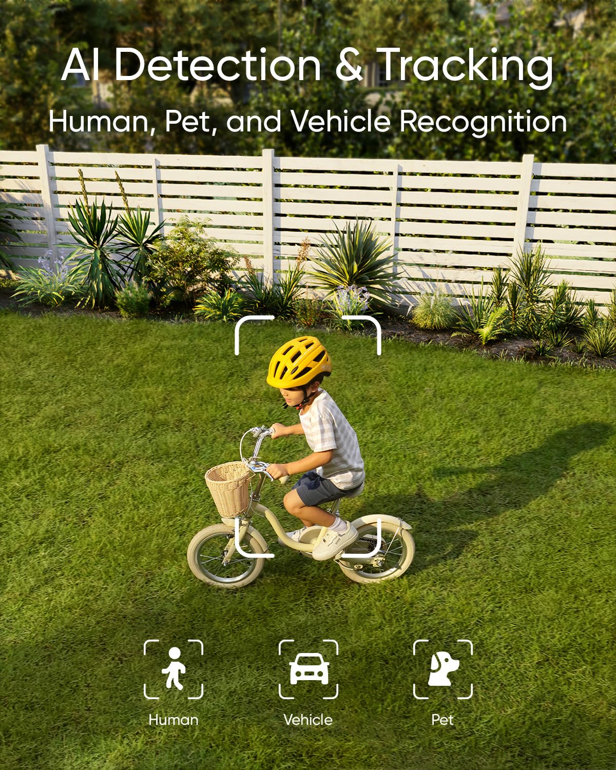 - 360° Camera Coverage Keeps Track of Detected People: Pan 360° horizontally for a complete view. AI identifies people and tracks their movements. Auto-patrols on a schedule.