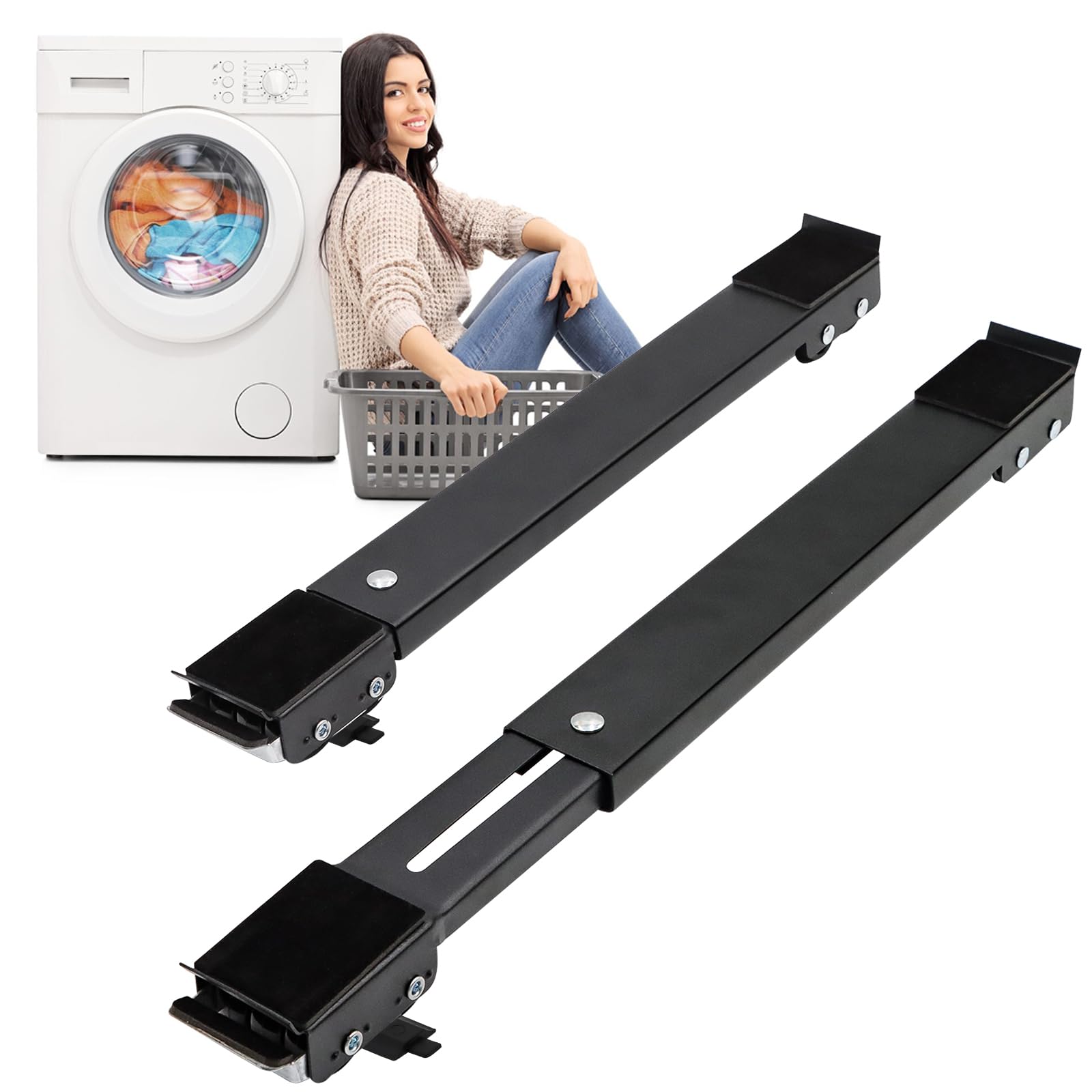 Extendable Furniture Appliances Rollers, Mover Tools with 24 Roller & Brake Equipment for Heavy Washing Dryer Machine Refrigerator for Mobile Wheels Strong Base Stand Hold Up to 660 lb Black