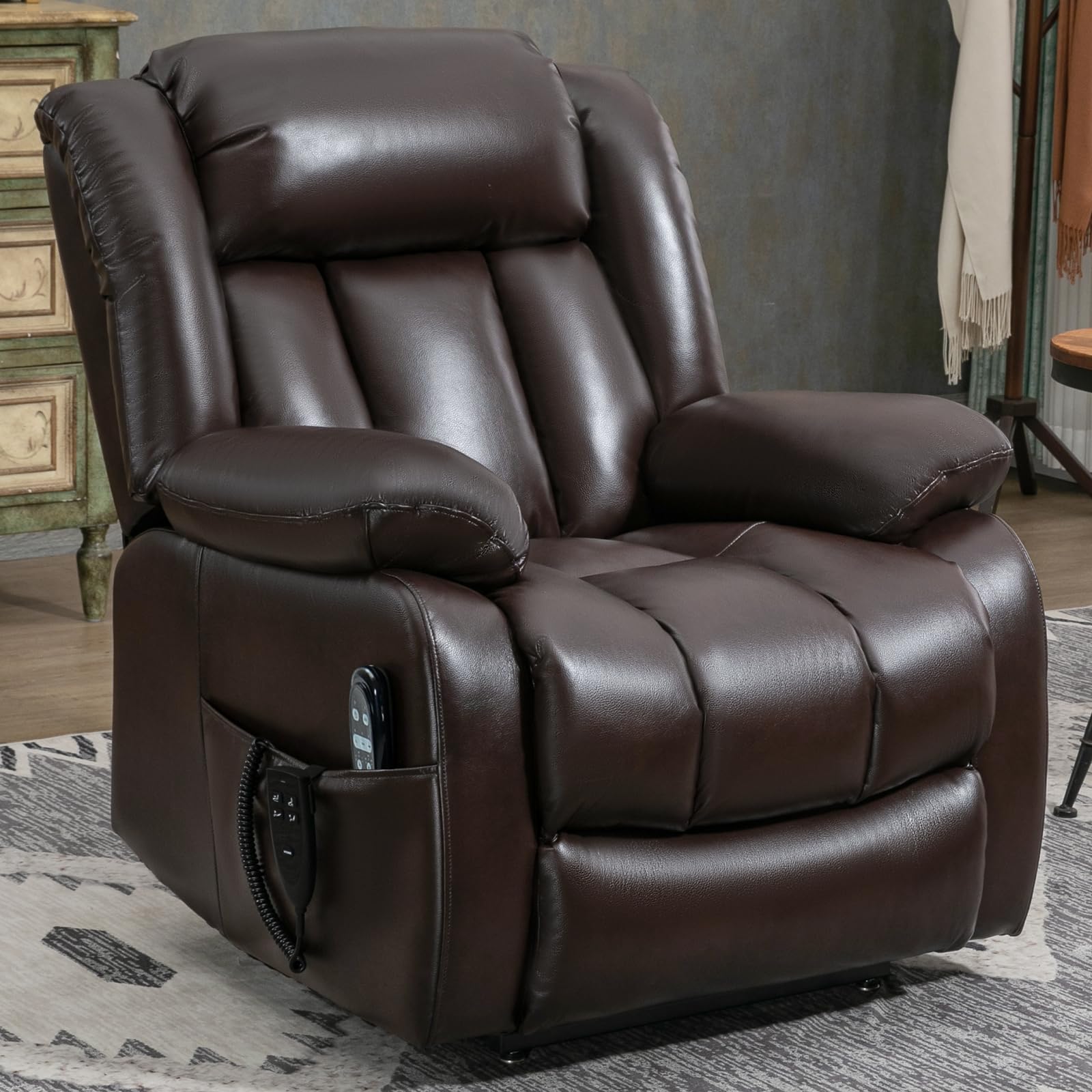EZZUP Dual Motor Large Recliner with Massage and Heat, Power Lift Chairs for Elderly, Breathable Leather Recliner Chairs for Adults with 2 Remote Controls, Red Brown Big and Tall Recliner