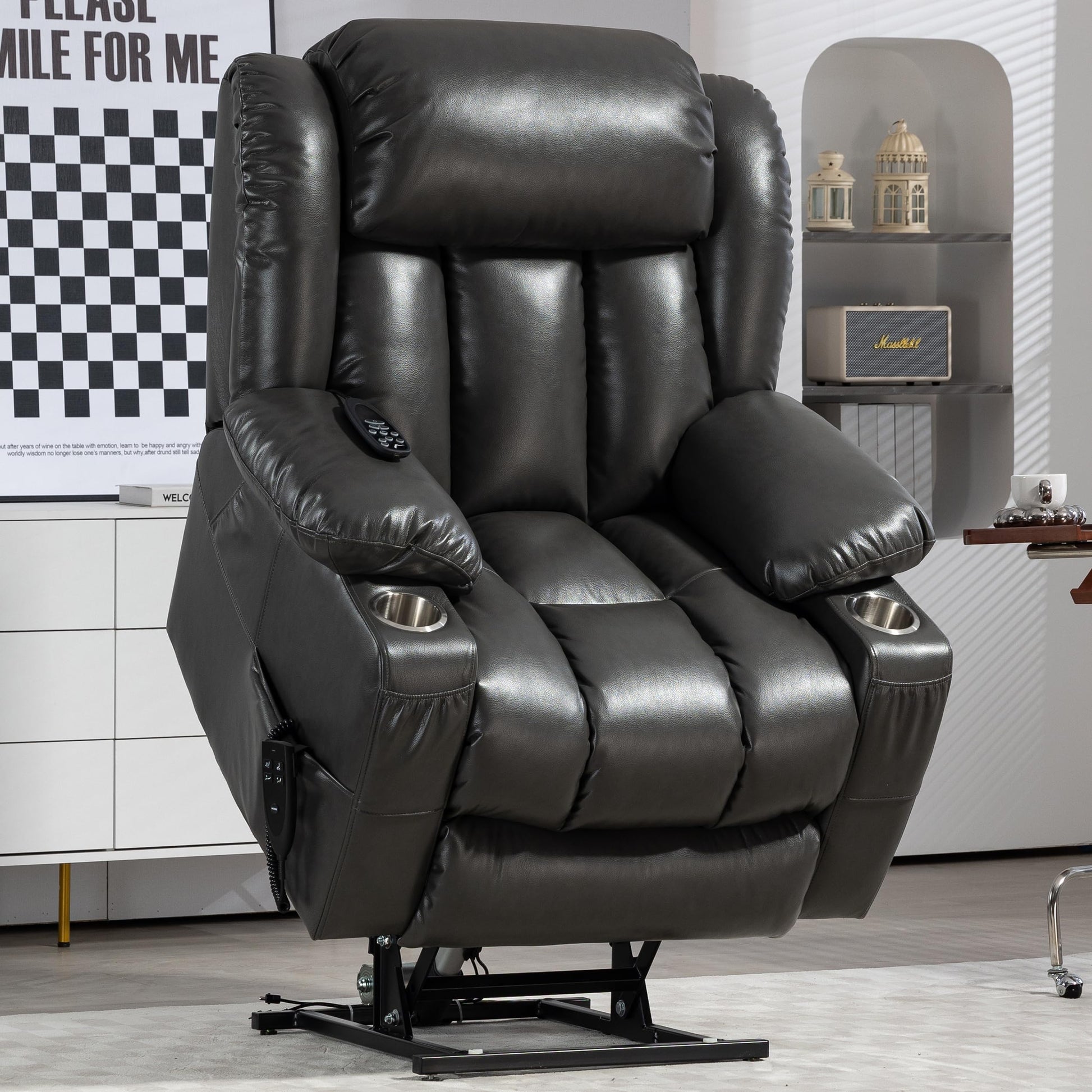 - More Than You Want: This heated massage recliner is made of breathable leather, which is durable and scratch resistant. Two stainless steel cup holders are provided for your drink. Pockets on both sides of the dual motor recliner chair for elderly allow for small items within reach.
