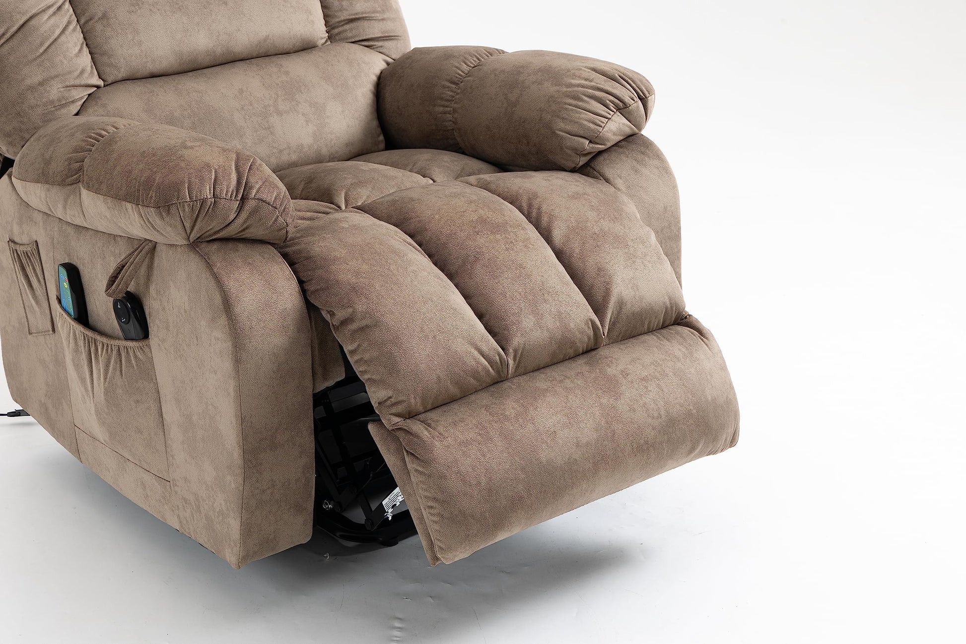 FANYE Electric Power Lift Recliner Chair for Elderly with Massage and Heat, Microfiber Upholstery 3 Positions Adjustable Standard Size Armchair W/ 2 Remote Controllers & Side Pockets