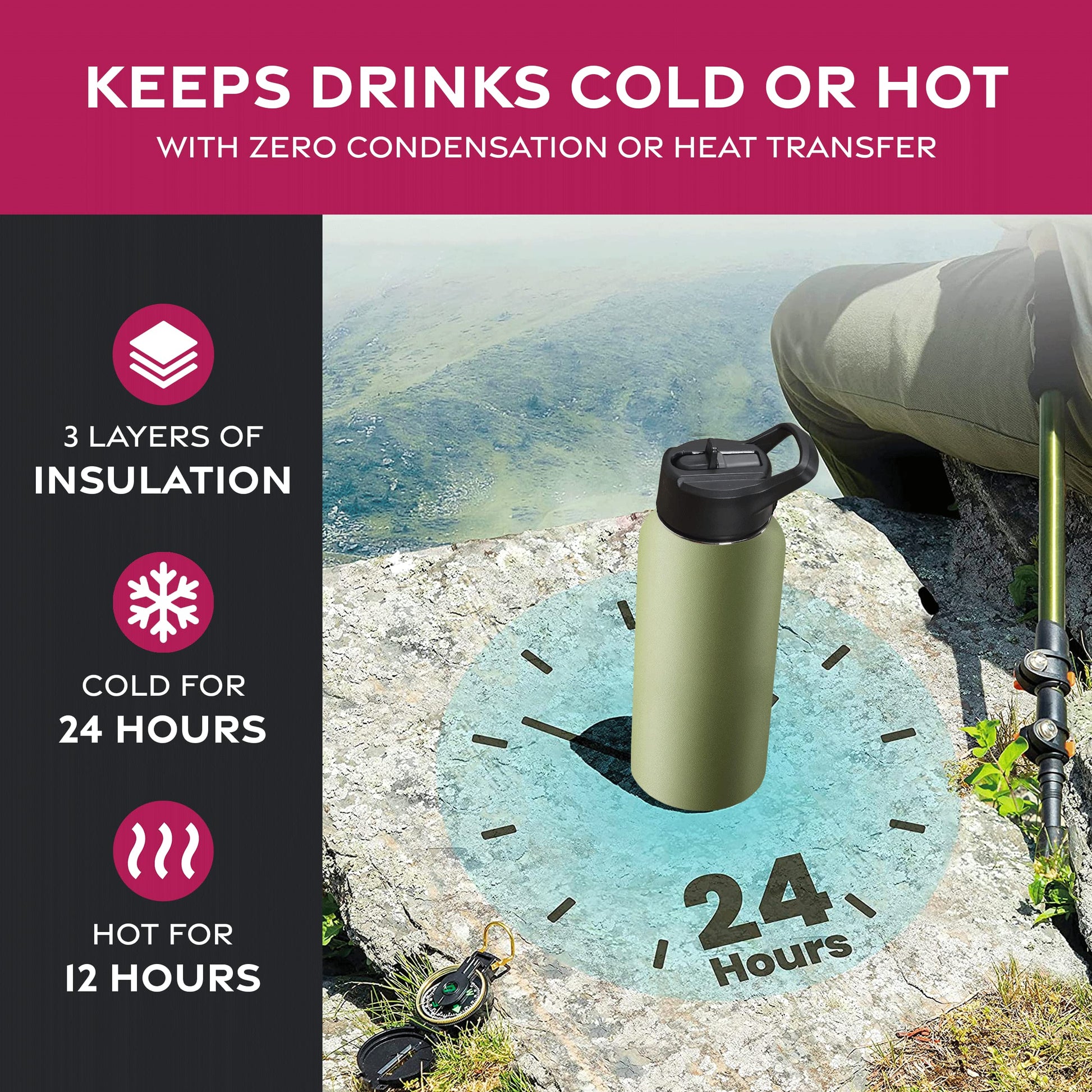 - TRIPLE INSULATION: Our thermoses are crafted with triple insulation to keep your drinks hot for up to 12 hours and cold for up to 24 hours! Say goodbye to lukewarm drinks and hello to refreshing sips all day long.
