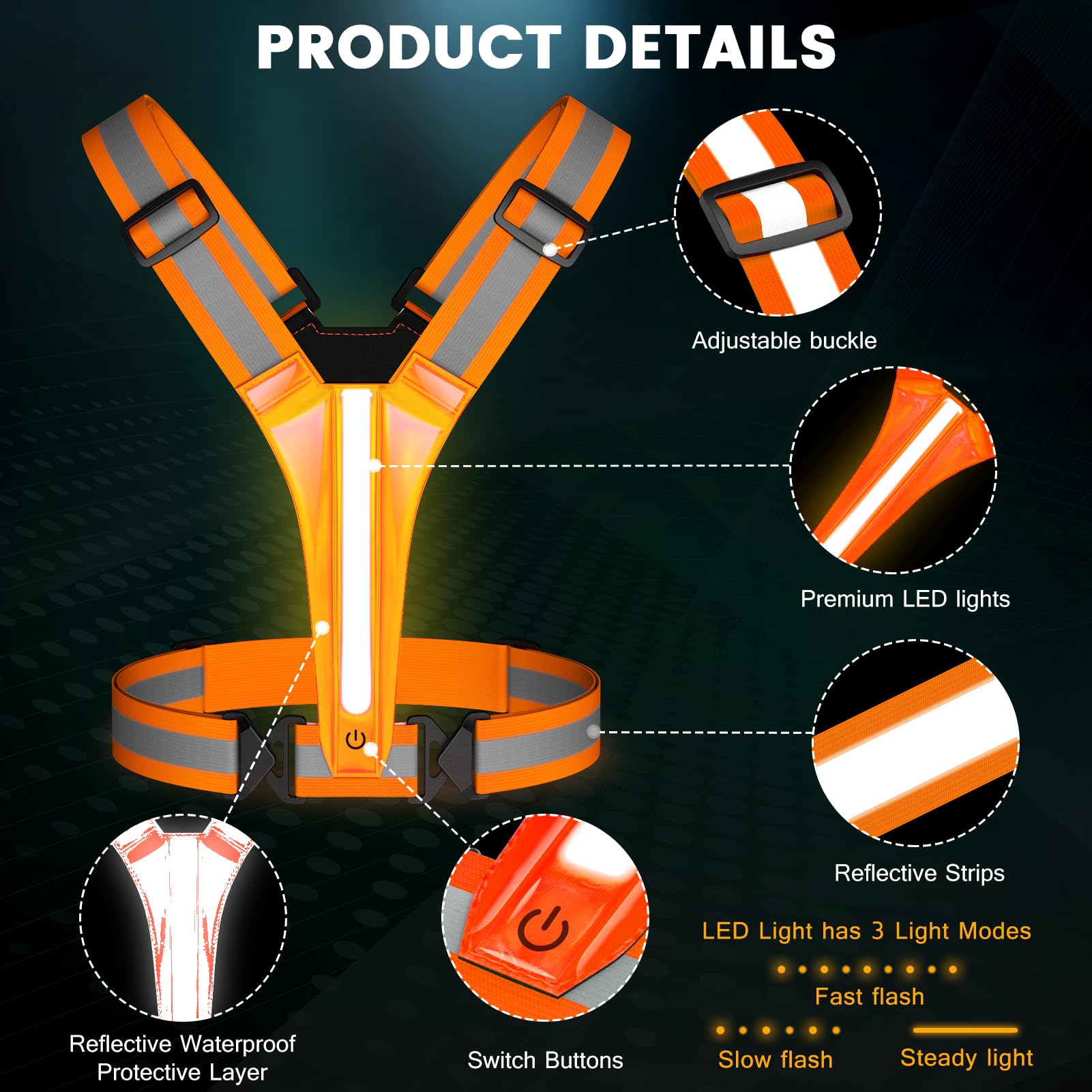 - Improved safety with LED reflective running vest: This night running gear provides a brighter running vest than the previous generation. In addition to the reflective strip, we also advanced the running vest by designing incredible LED lights that can be seen from 1000 feet away.