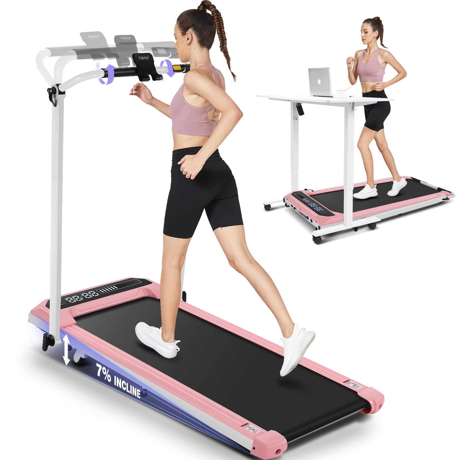FUNMILY Folding Treadmill with Handles, Foldable Walking Pad Treadmill with Incline and Adjustable Handrails, 3 in 1 Under Desk Treadmills for Home 300 lb Capacity, Running Machine with Handle Bar
