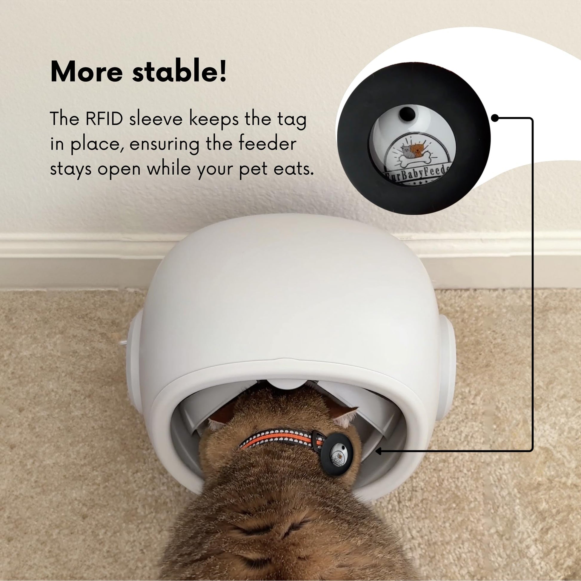 - Now with Mute and RFID sleeve: By popular request, the Sphere model now includes a mute option to silence the beeping sound when the doors close—ideal for noise-sensitive pets. It also includes our new RFID tag sleeve, allowing tags to be removed from the clasps and securely slid onto your own collar for improved comfort and better signal range.