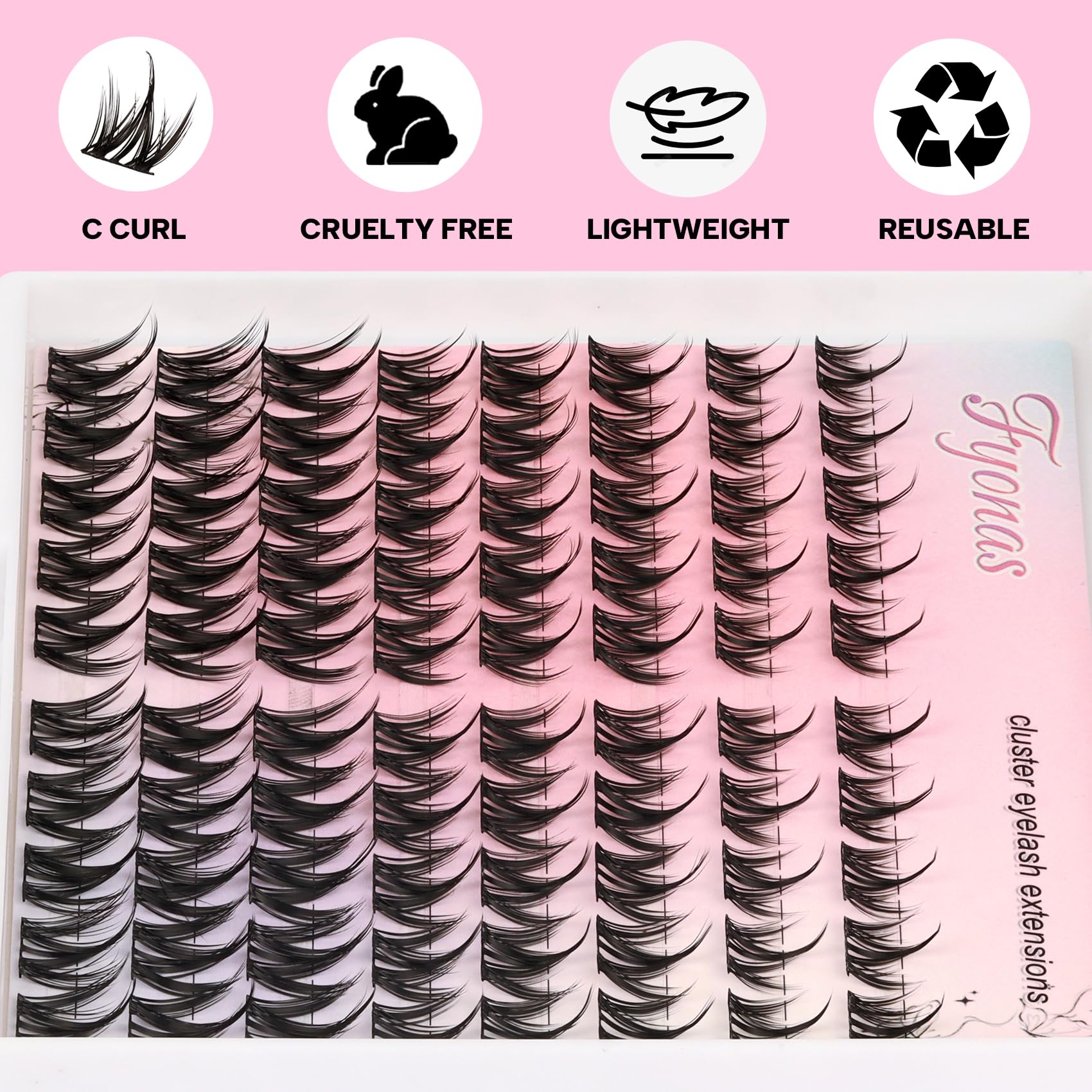 - High Quality: Our lash clusters are made of imported fibers, long-lasting shape, skin-friendly material, not easy to fall apart, upgraded thin band, wearing a natural effect, lightweight design reduces the burden on the eyes, all-day outing without stress!